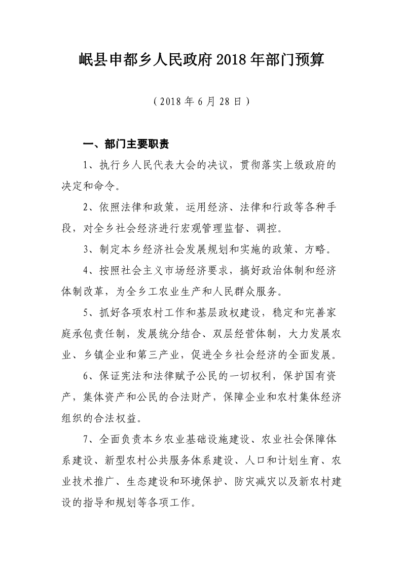 岷县申都乡人民政府2018年部门预算