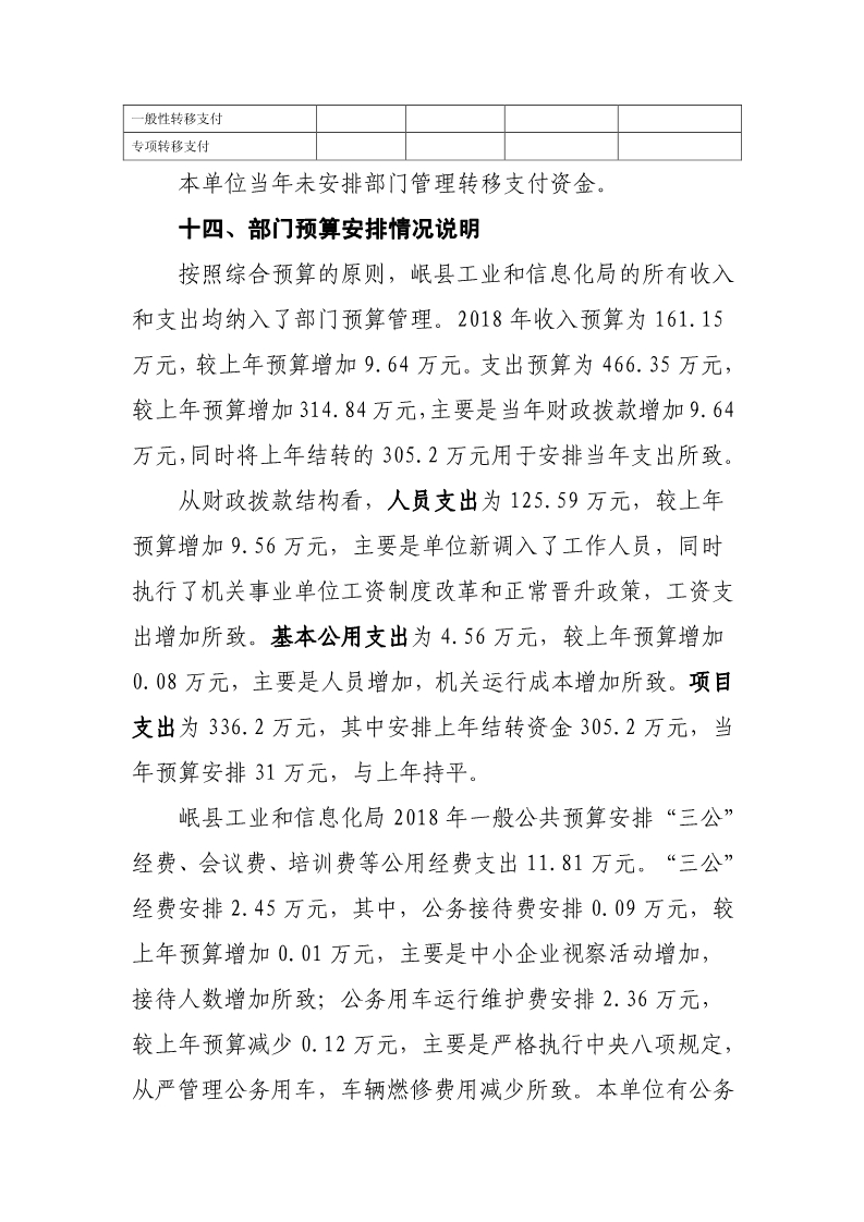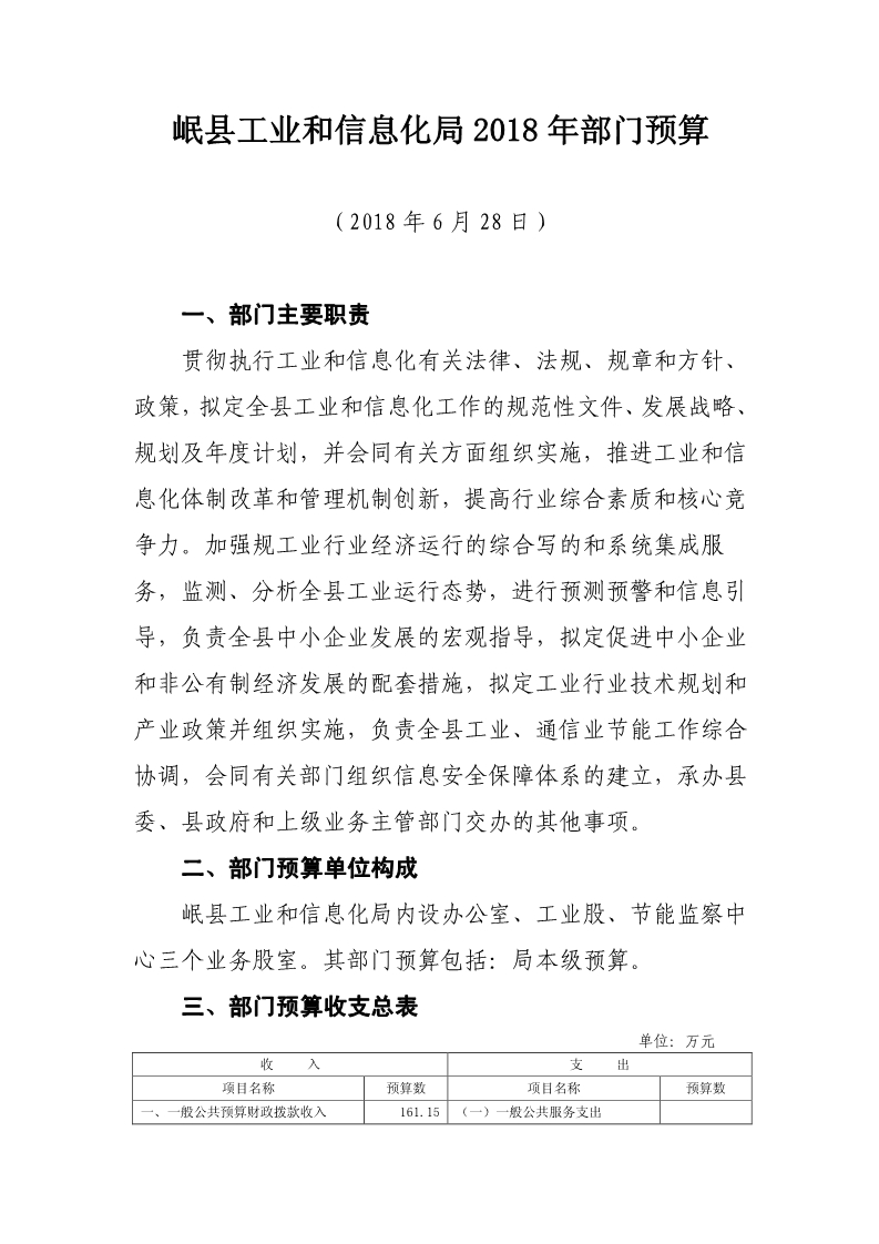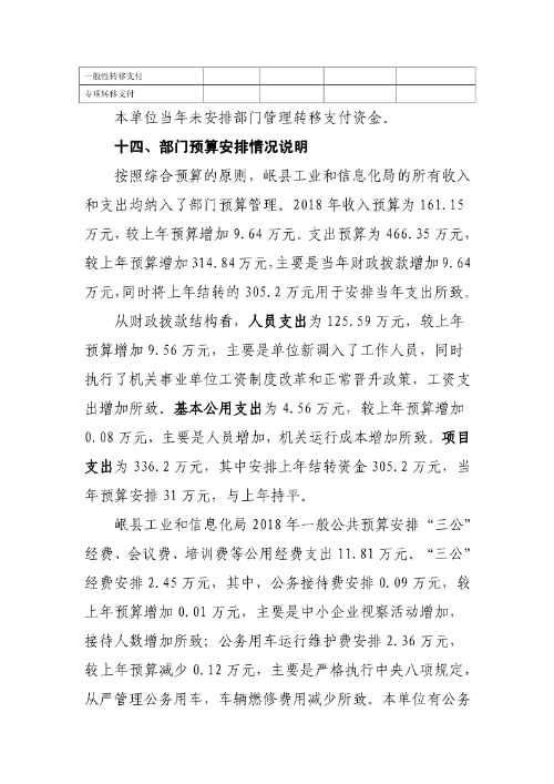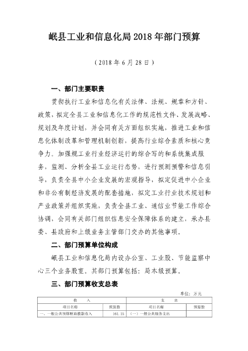 岷县工业和信息化局2018年部门预算