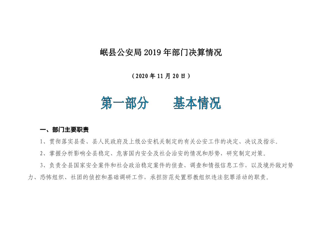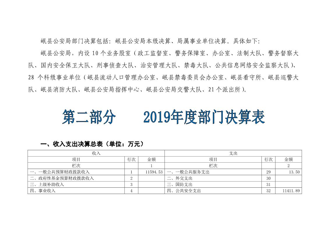 岷县公安局2019年部门决算情况