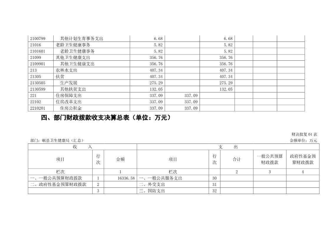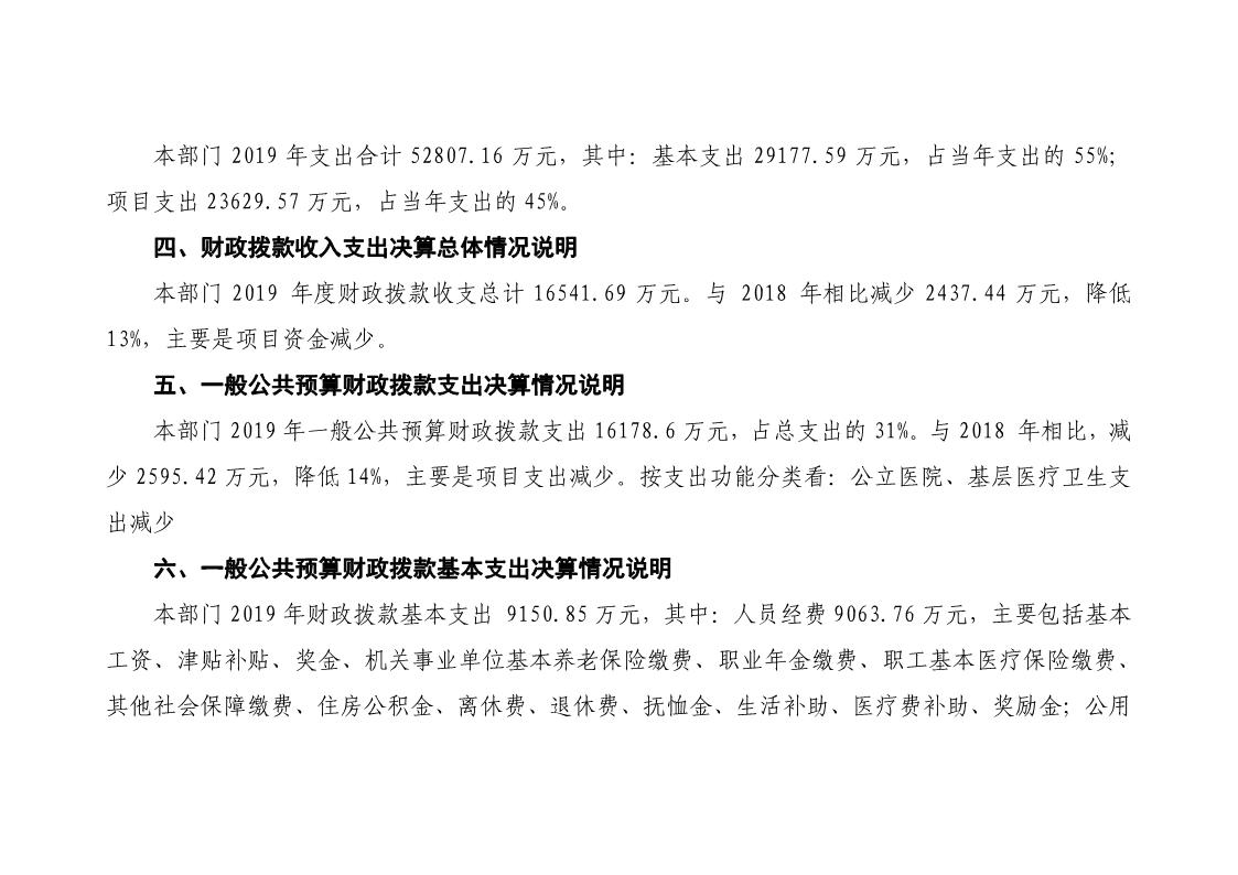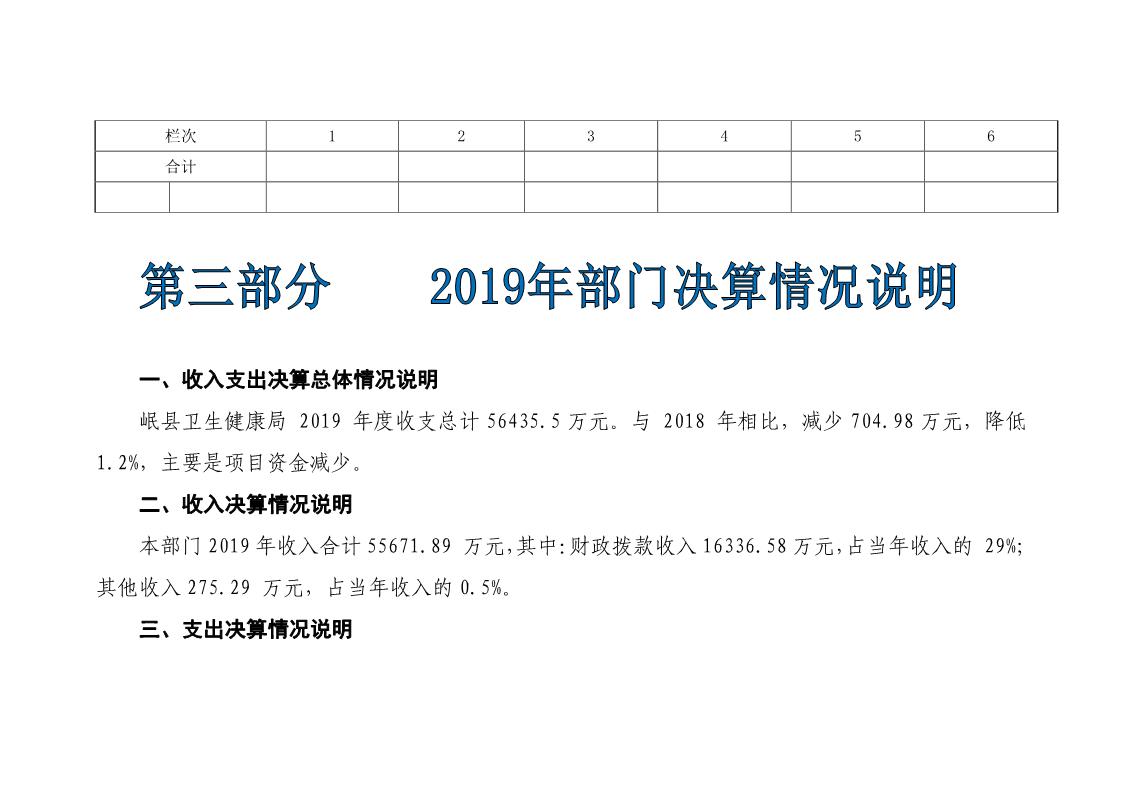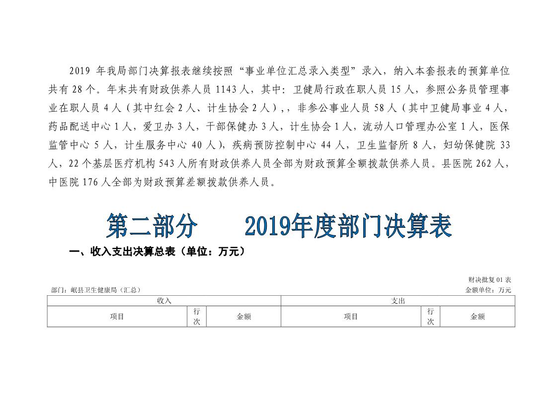 岷县卫生健康局2019年部门决算情况