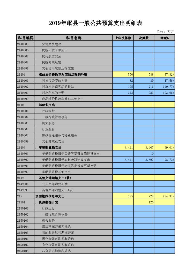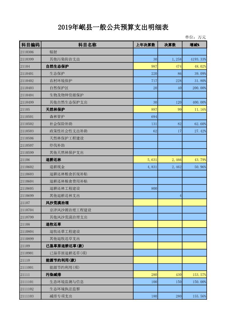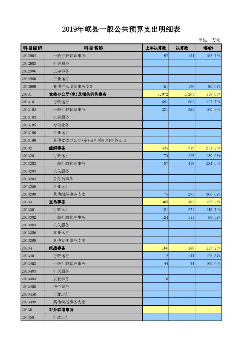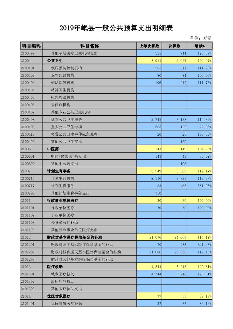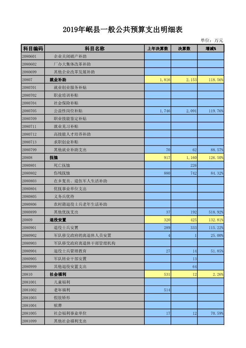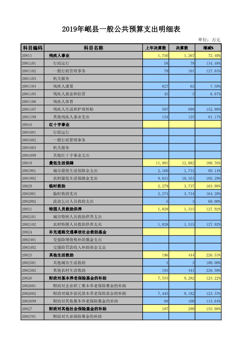 2019年岷县一般公共预算支出明细表