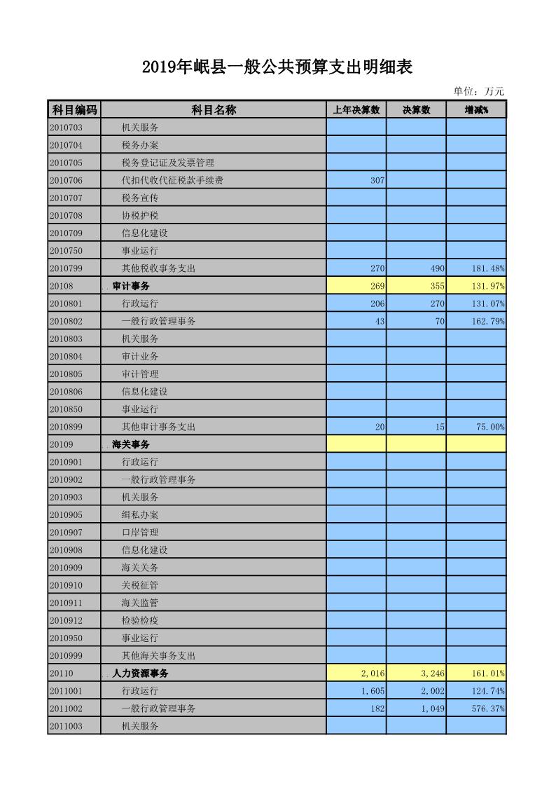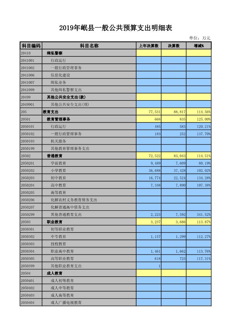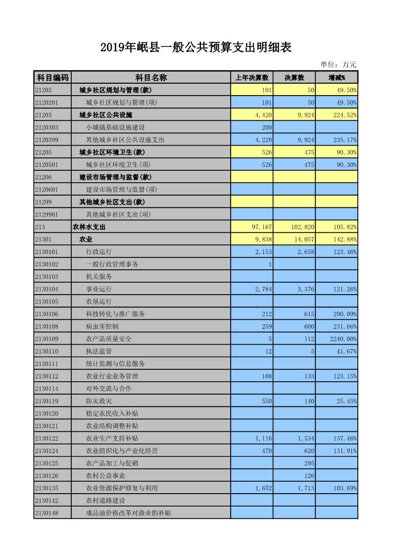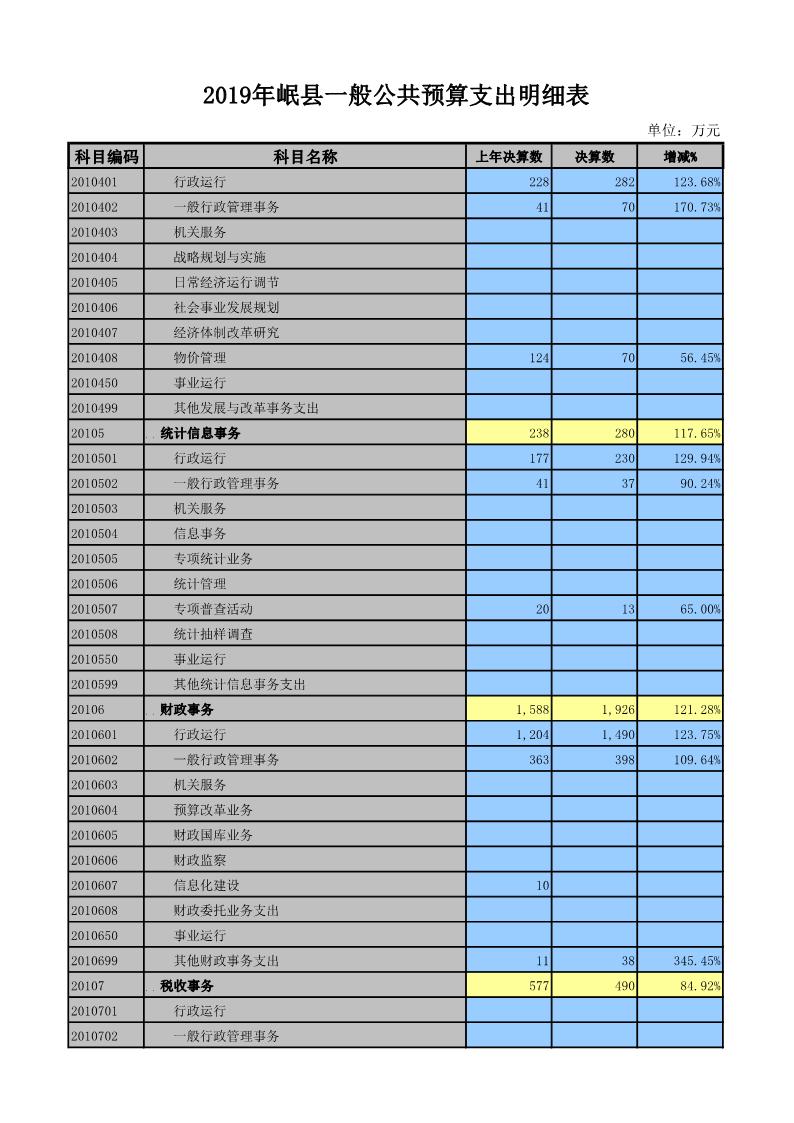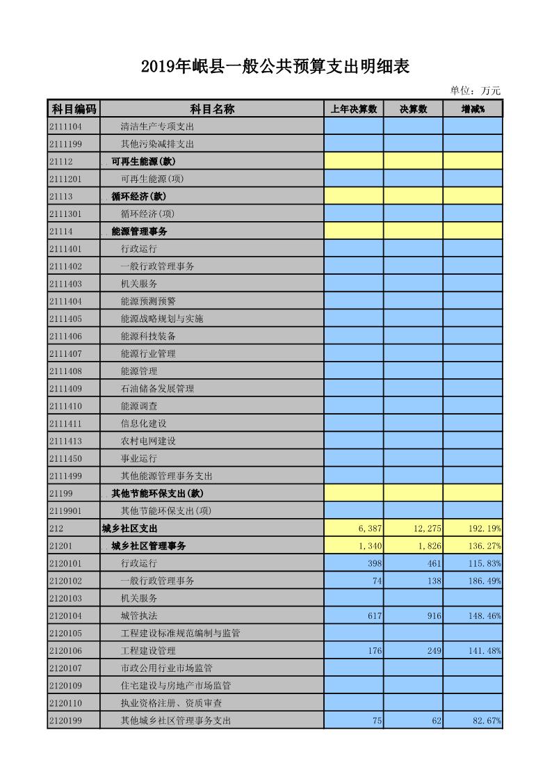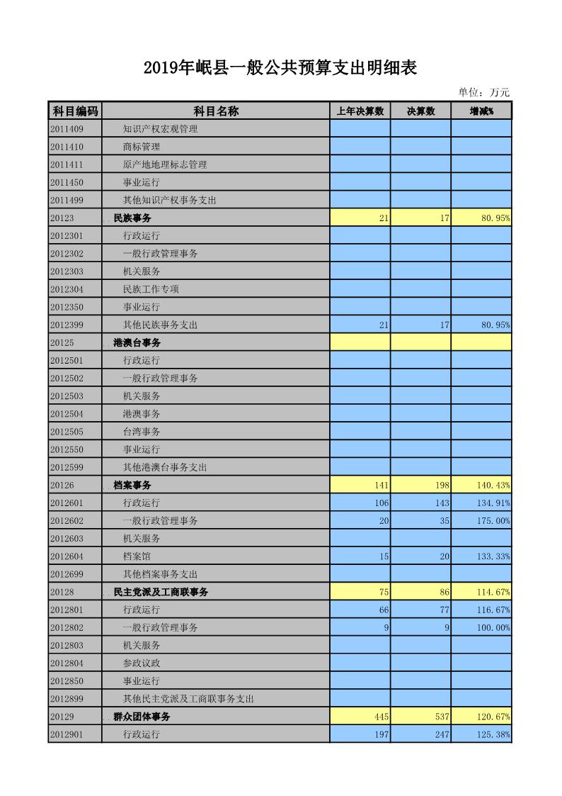 2019年岷县一般公共预算支出明细表
