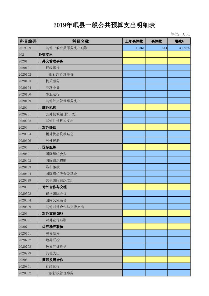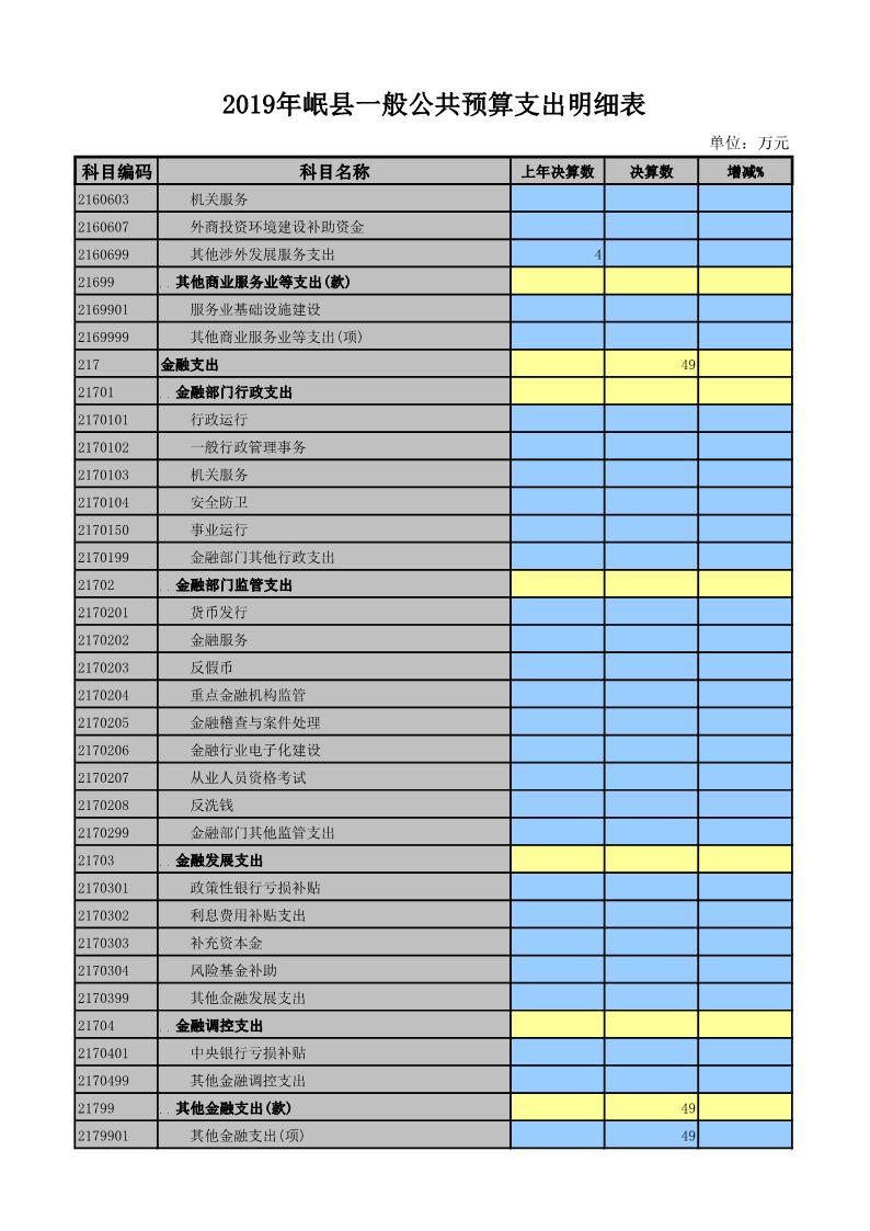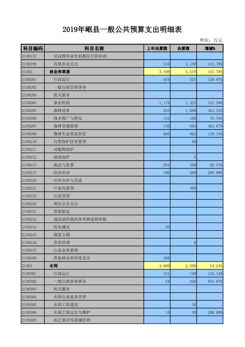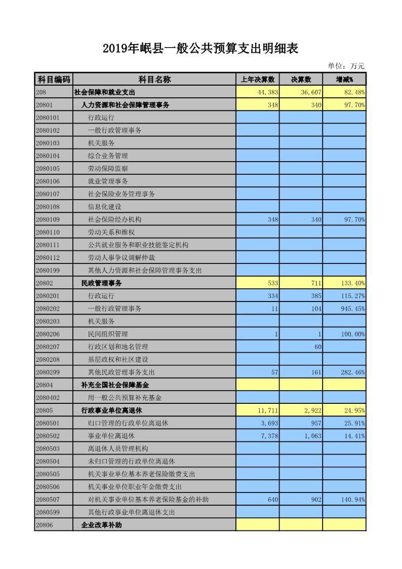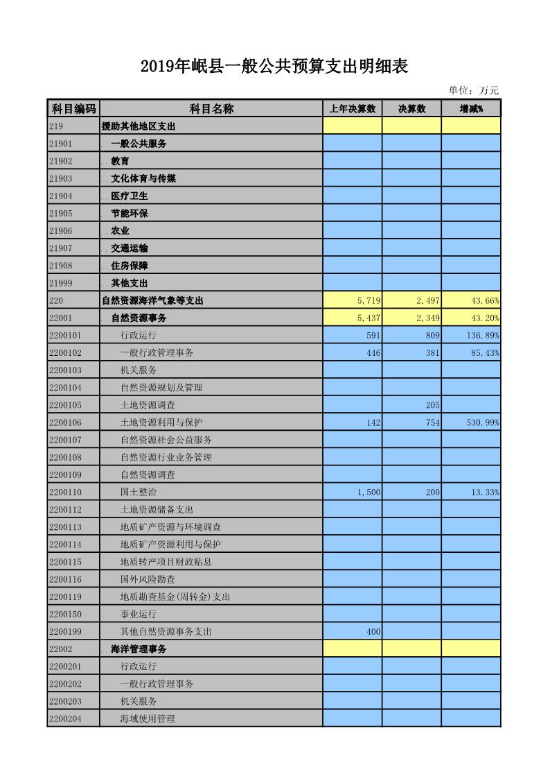 2019年岷县一般公共预算支出明细表