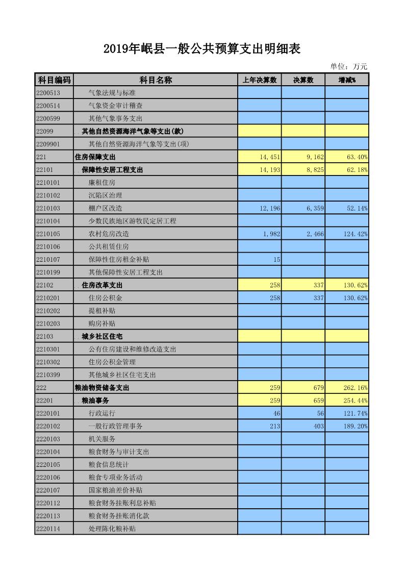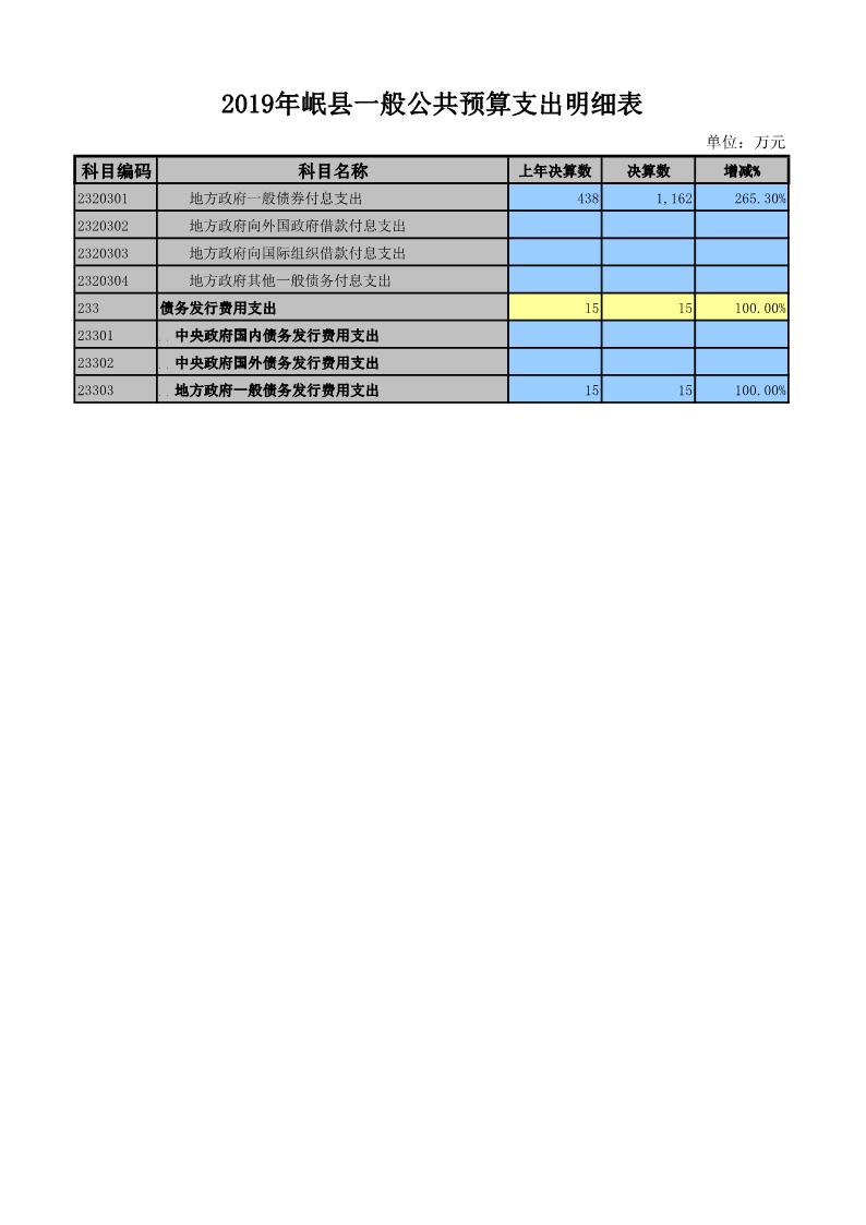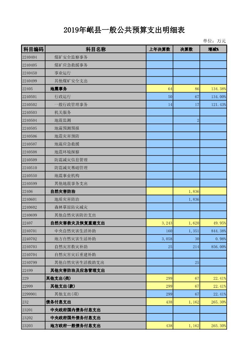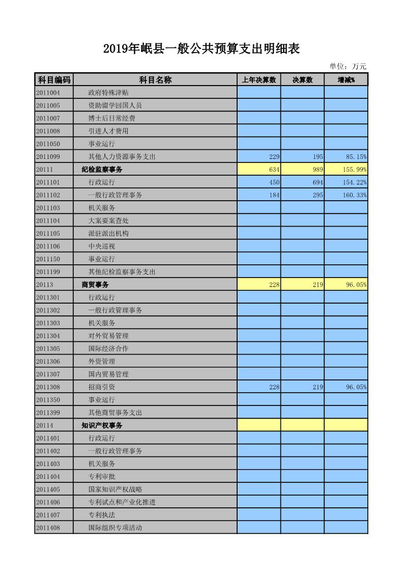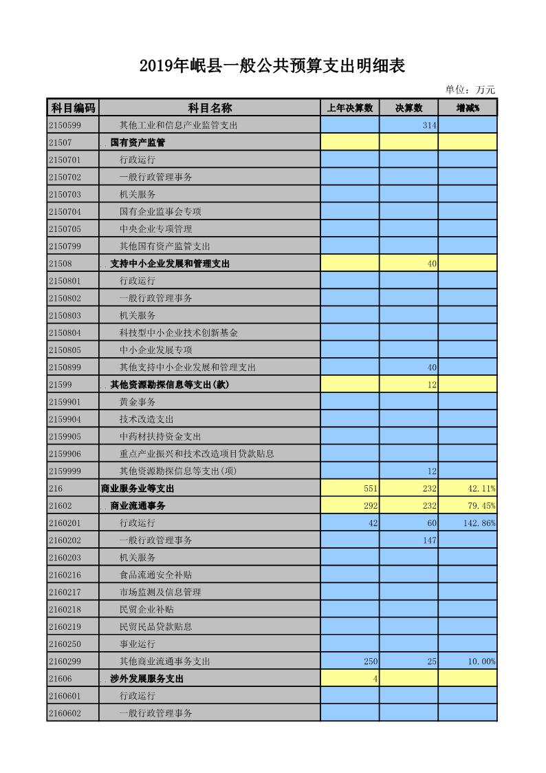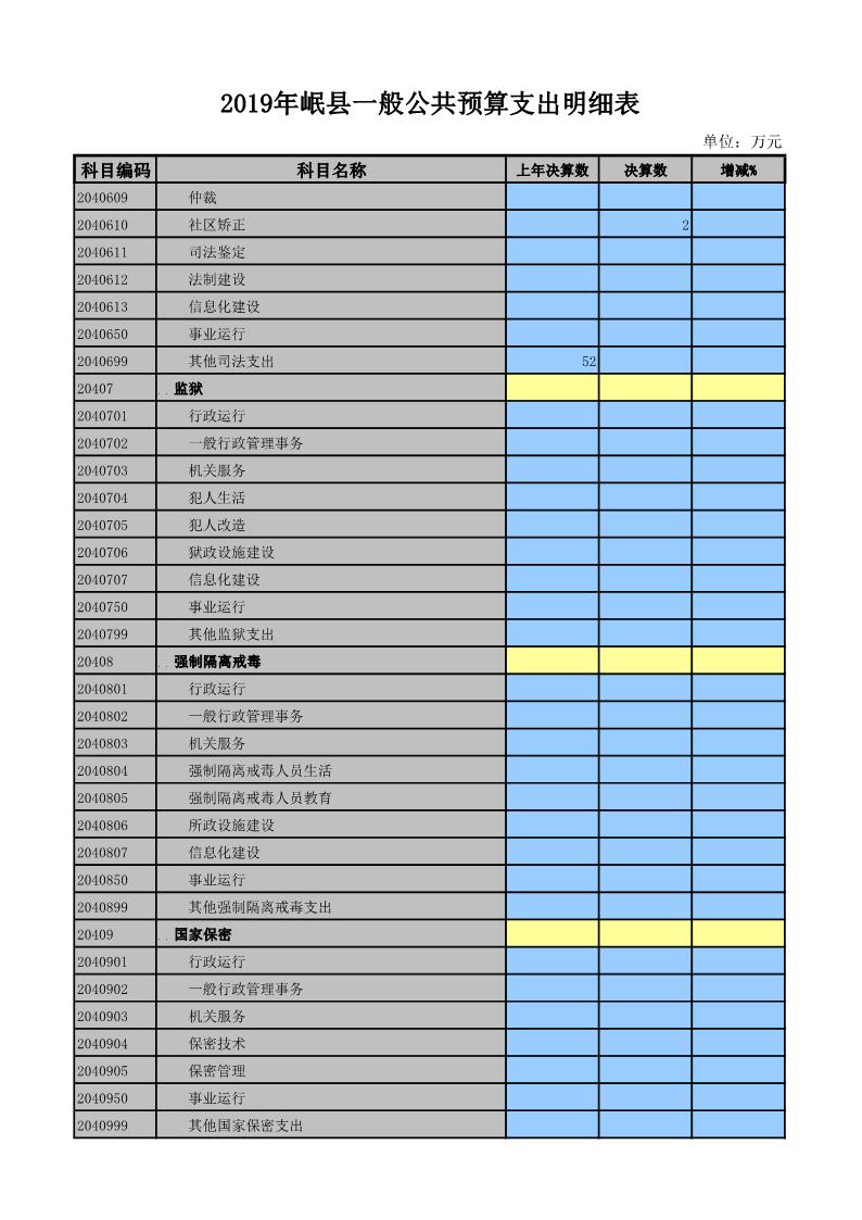 2019年岷县一般公共预算支出明细表