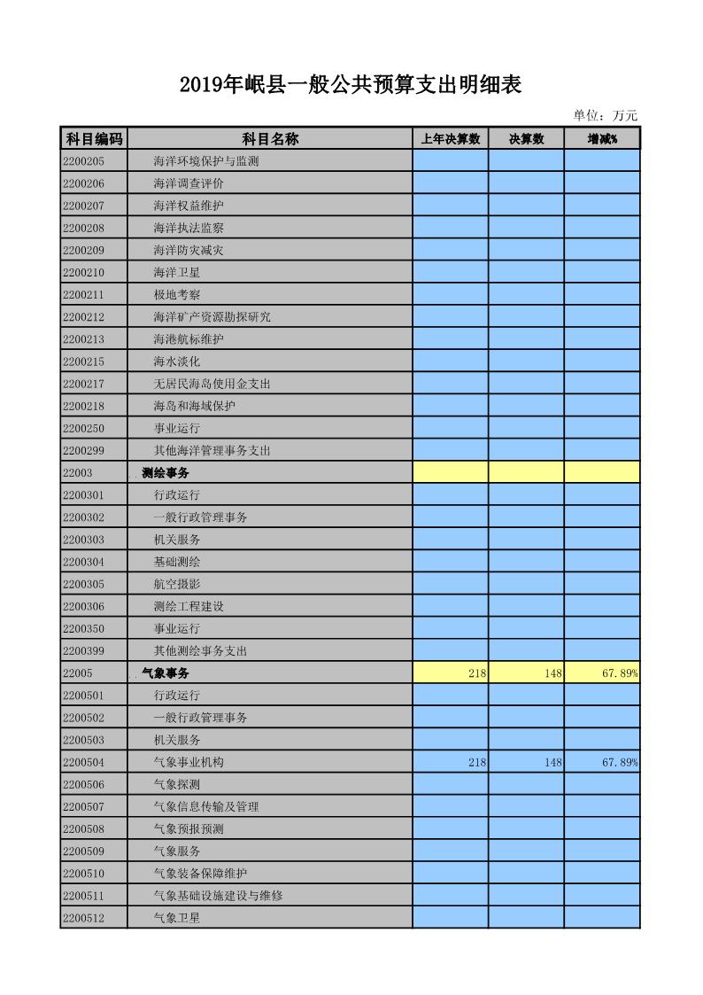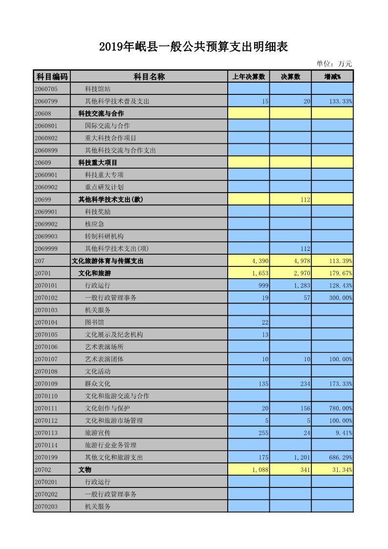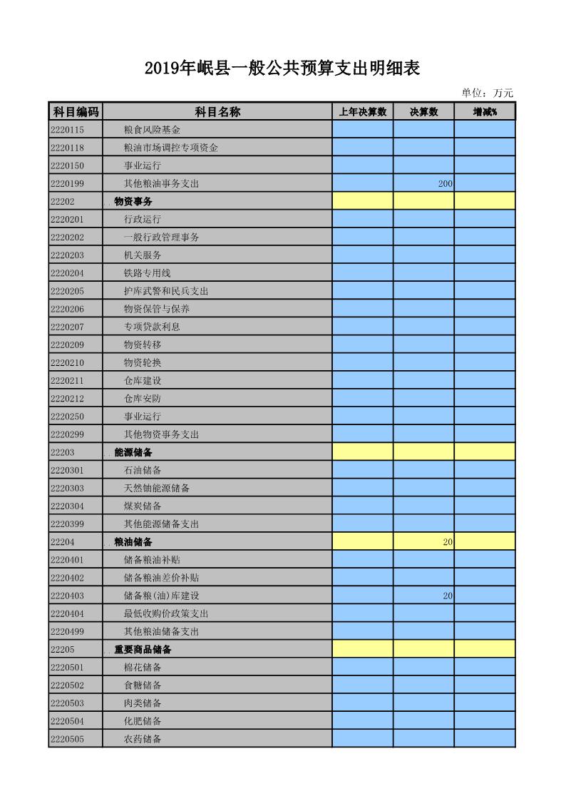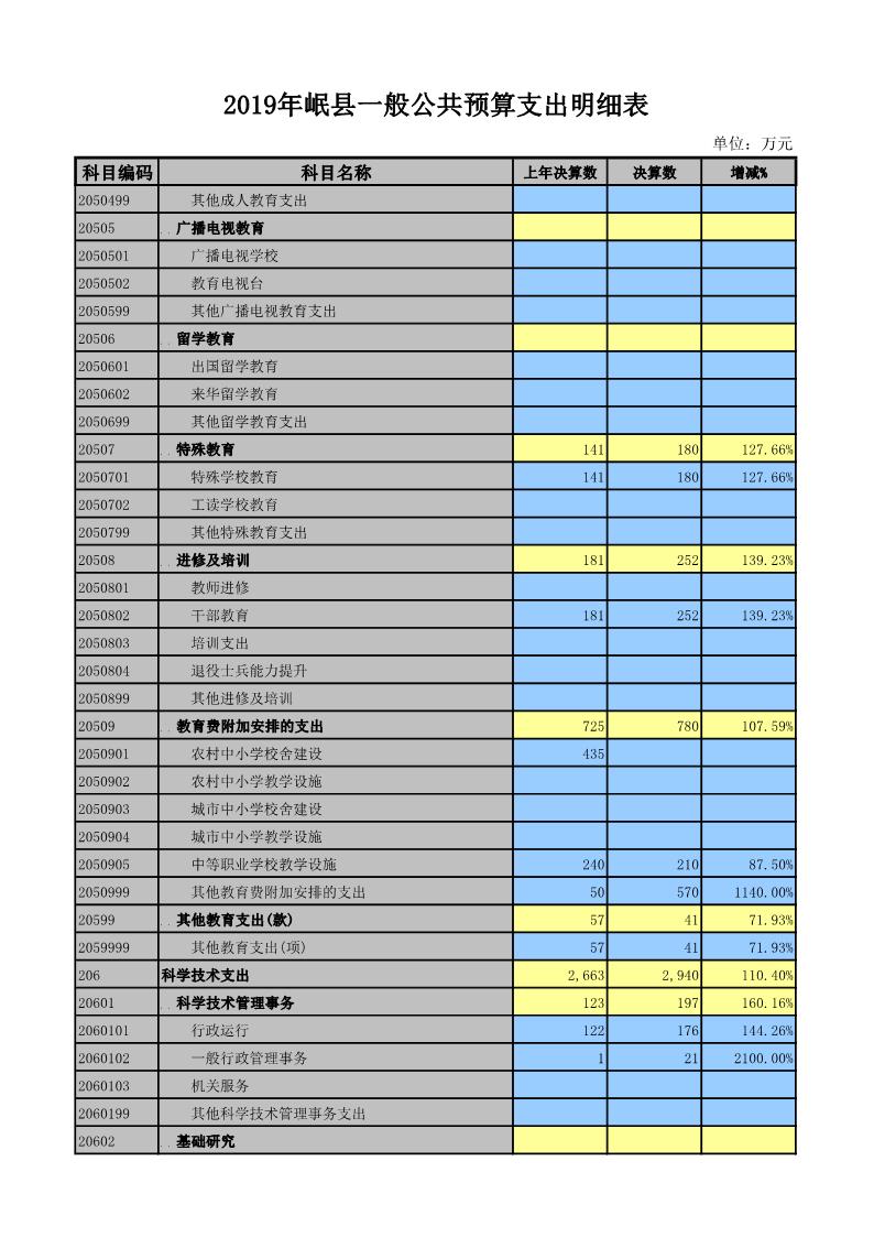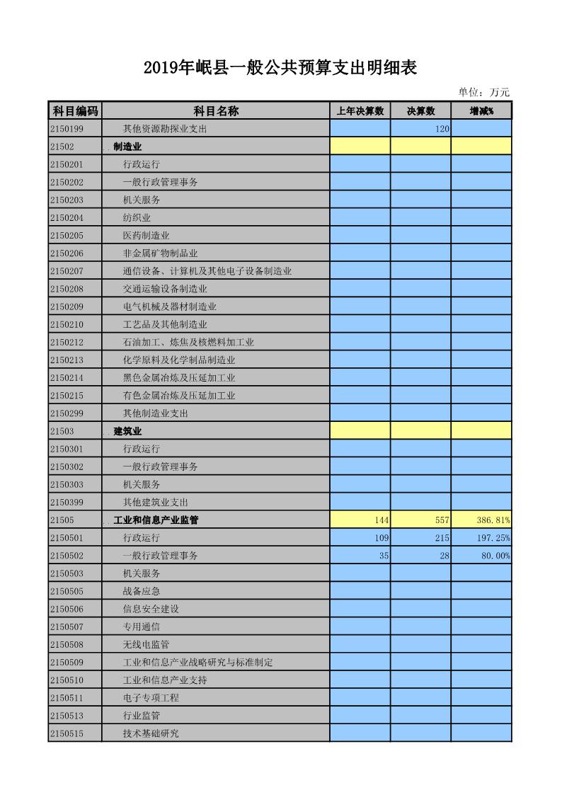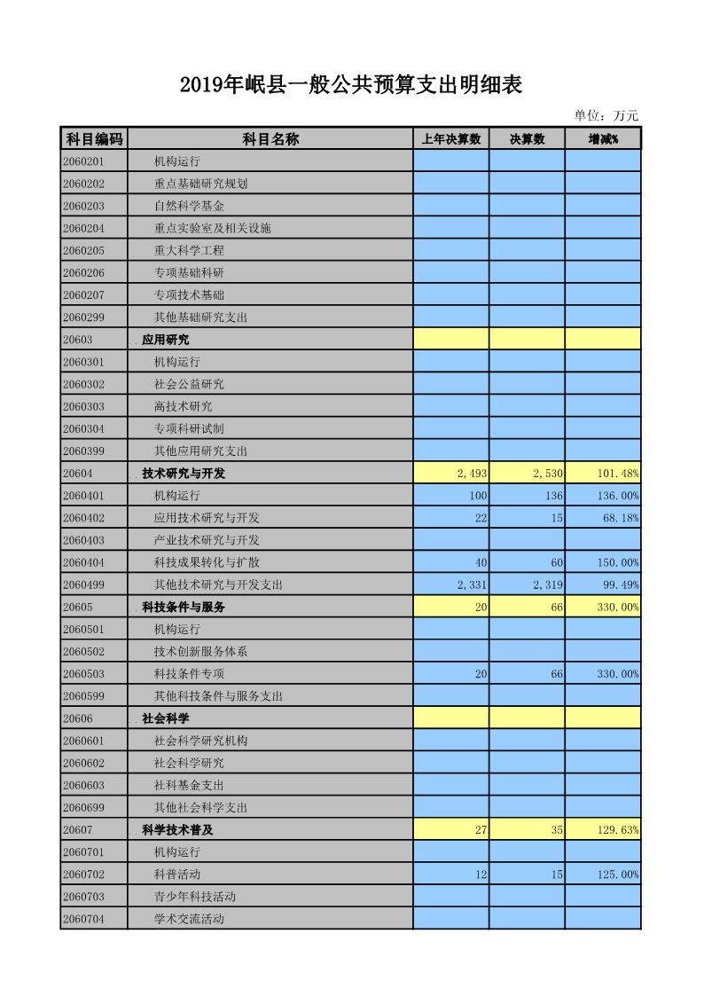 2019年岷县一般公共预算支出明细表