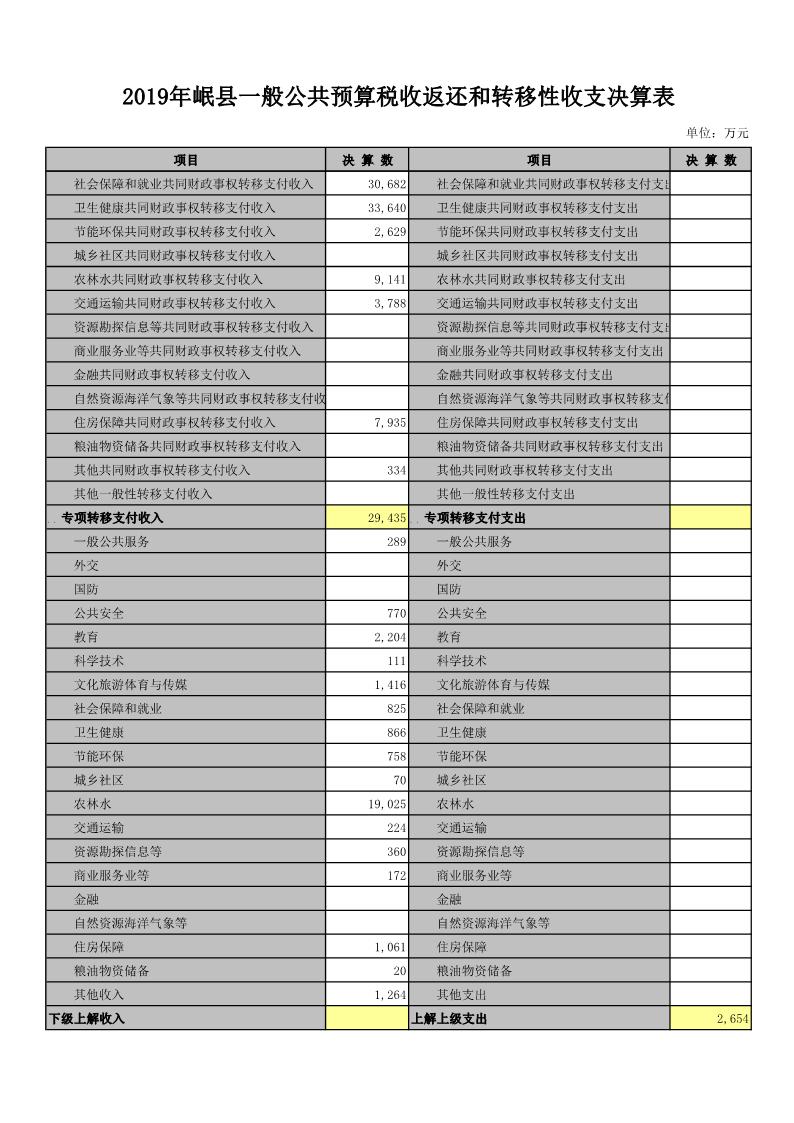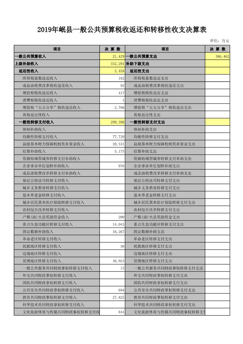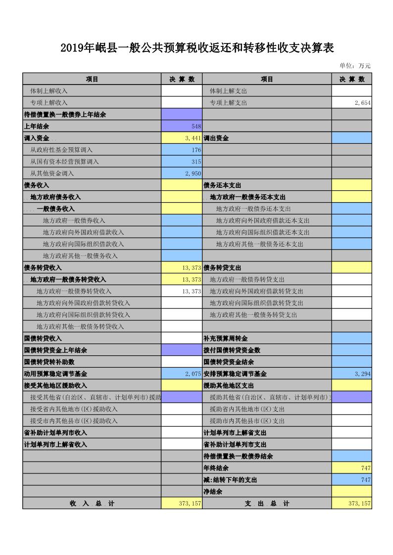 2019年岷县一般公共预算税收返还和转移性收支决算表
