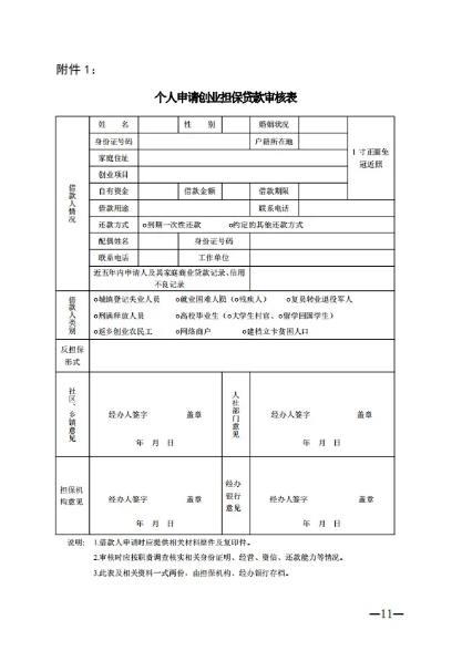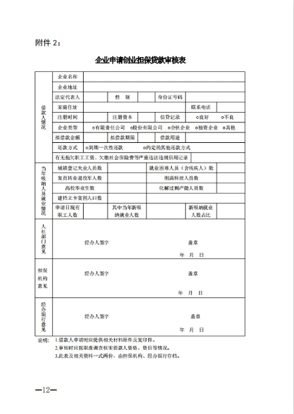 附件:1.个人申请创业担保贷款审核表 2.企业申请创业担保贷款审核表