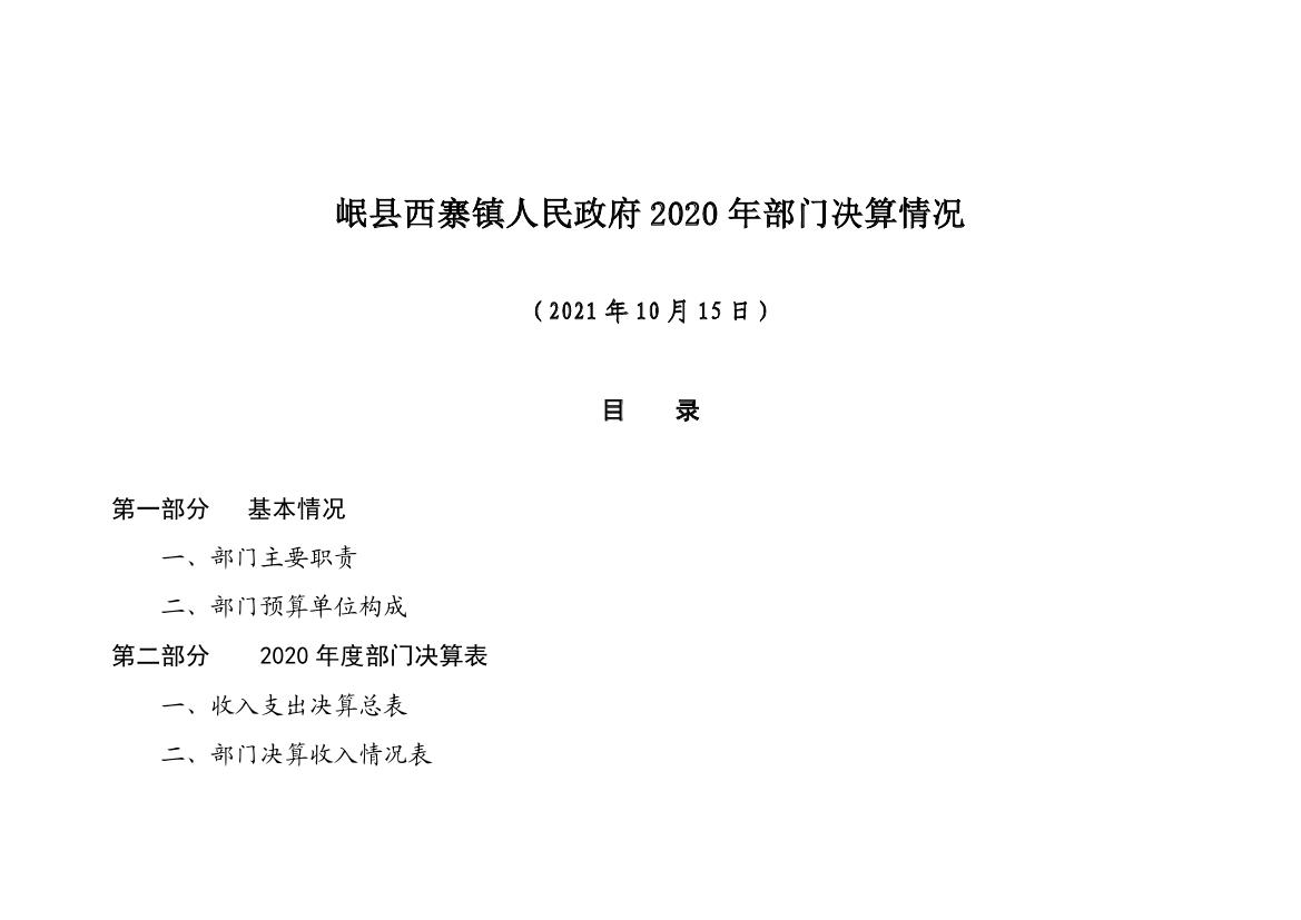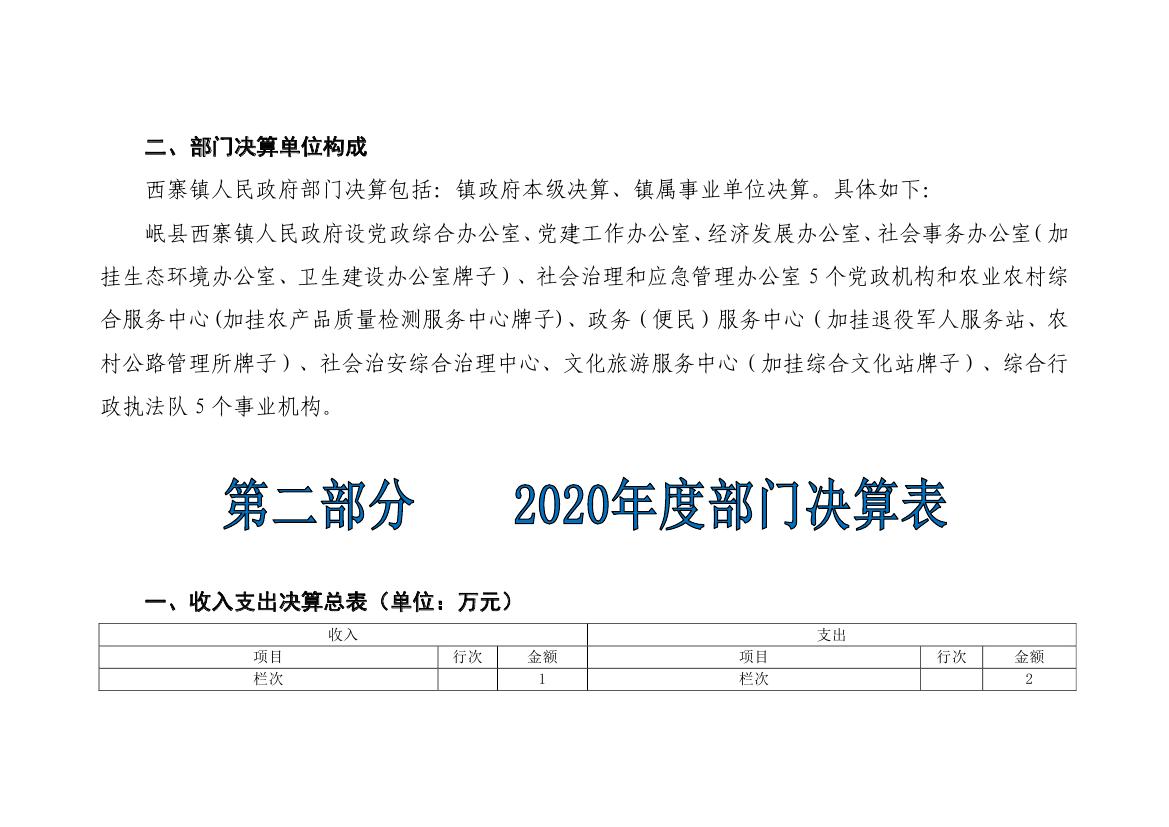 岷县西寨镇人民政府2020年部门决算情况