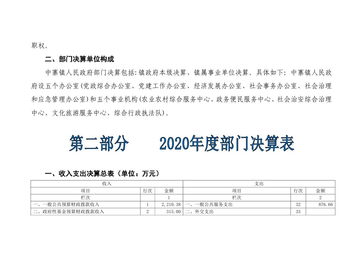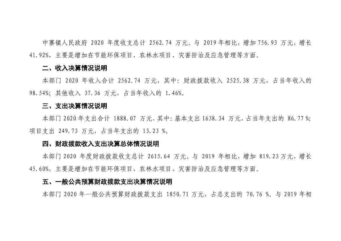 岷县中寨镇人民政府2020年部门决算情况