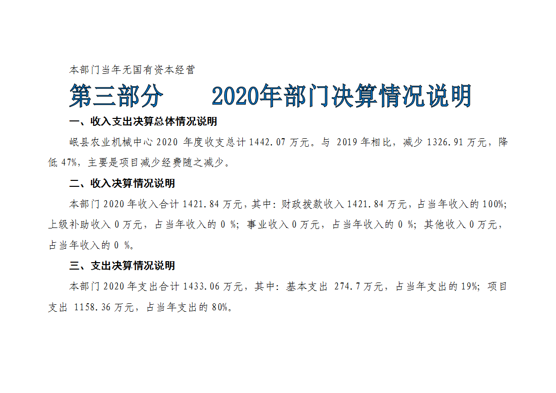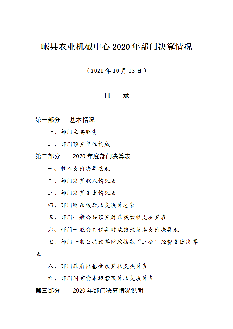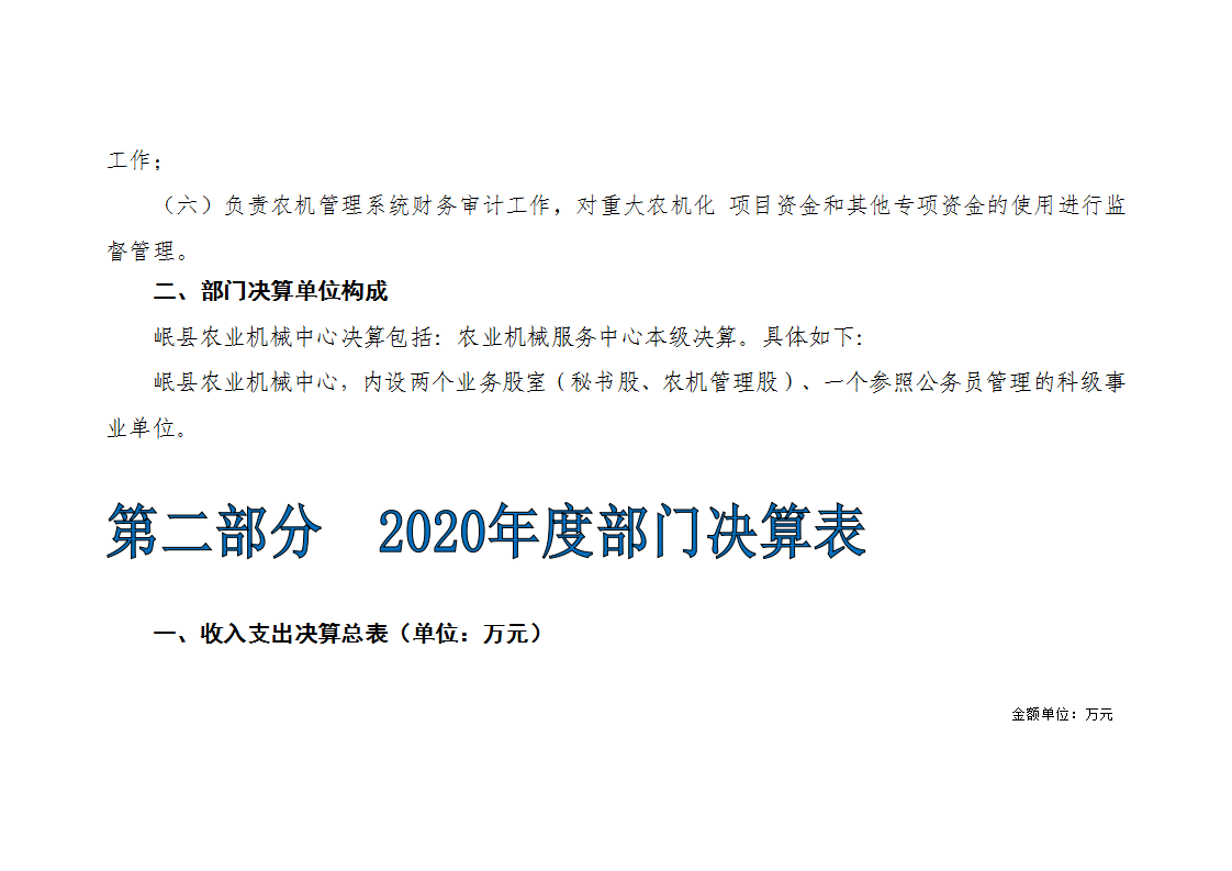 2020年岷县农业机械中心决算公开