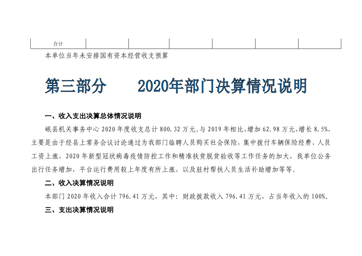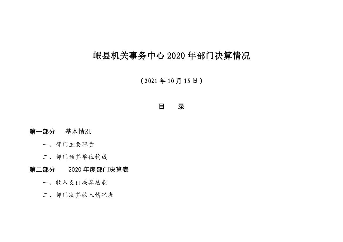 岷县机关事务中心2020年部门决算情况