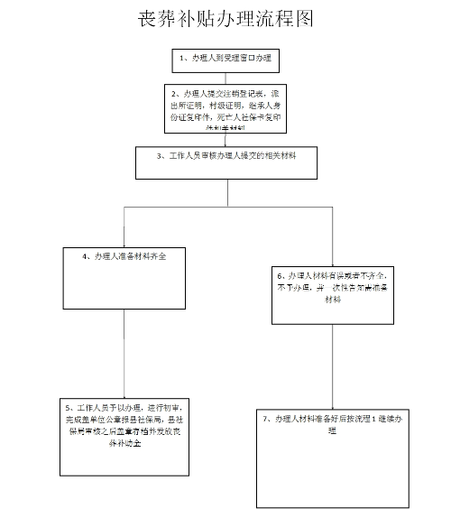 三、受理条件:建立待遇领取人员丧葬补助金制度,补助标准为中央和省级12个月基础养老金之和,所需资金由省级财政承担。 四、办理程序:1、由申报人员携带申报材料到闾井镇便民服务中心申报办理;2、便民服务中心工作人员窗口审核,符合条件的予以当场受理。 五、办理流程: