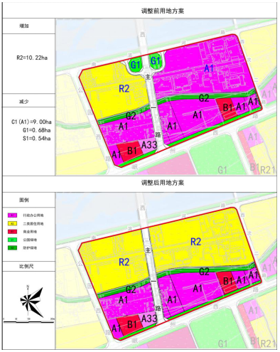 二是拟将位于规划西主一路东西两侧规划的约10.2亩的公园绿地调整为二类居住用地。三是拟将位于规划西主一路东侧规划的约135亩行政办公用地调整为二类居住用地。拟调整方案如下: