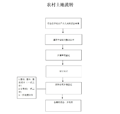 (一)设定依据:《农村土地承包法》第五节土地承包经营权的流转。 (二)收费标准:暂无 (三)办理时限: 1、法定办结期限:1个工作日 2、承诺办结期限:1个工作日 (四)办理形式: 1、窗口办理 办理地点:马坞镇便民服务中心 办理时间:周一至周五上午:8:30-12:00 下午2:30-6:00 2、网上办理 办理网址:甘肃政务服务(http://www.gszwfw.gov.cn/) 办理时间:24小时办理 3、咨询电话:0932-7406127 |