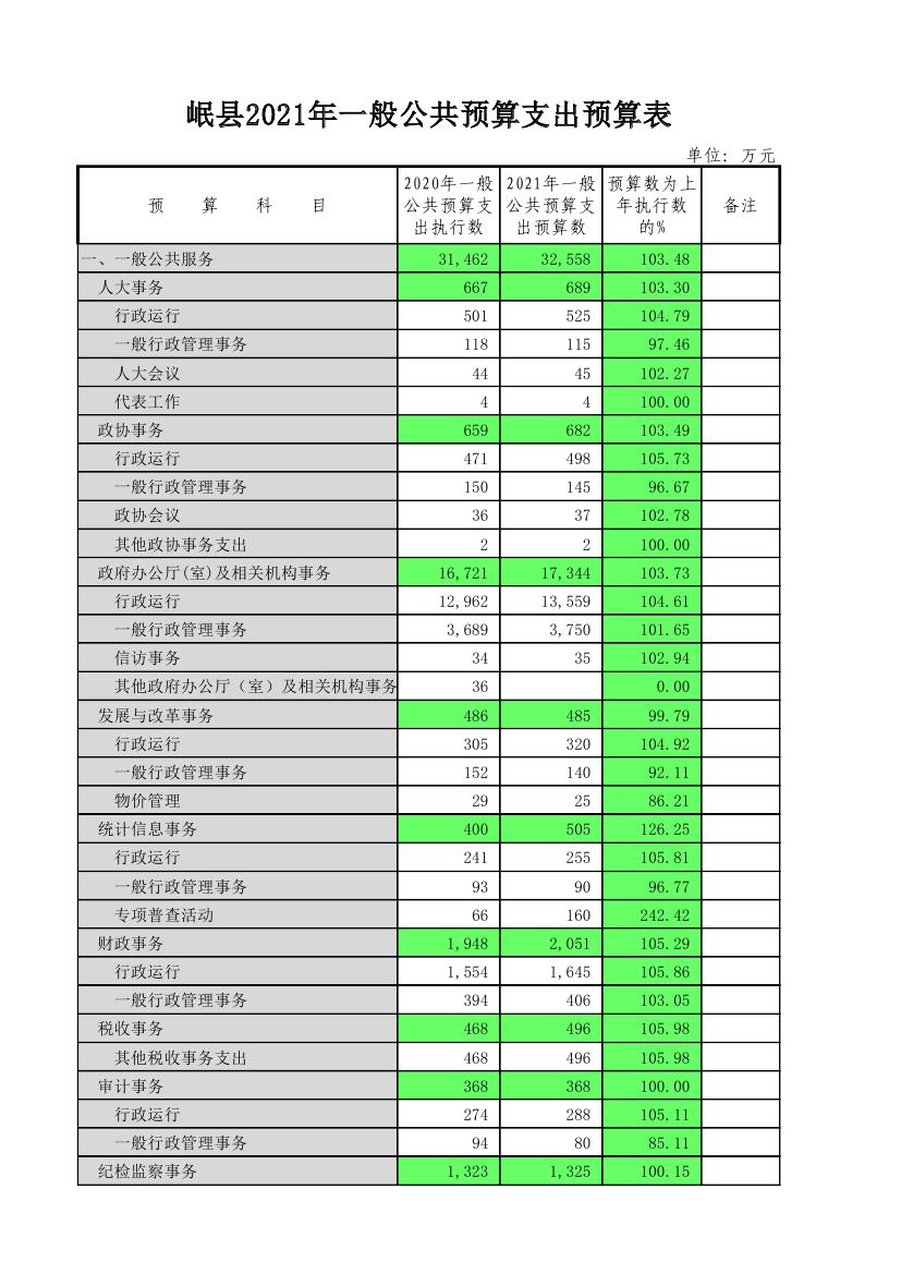 岷县2021年一般公共预算支出预算表