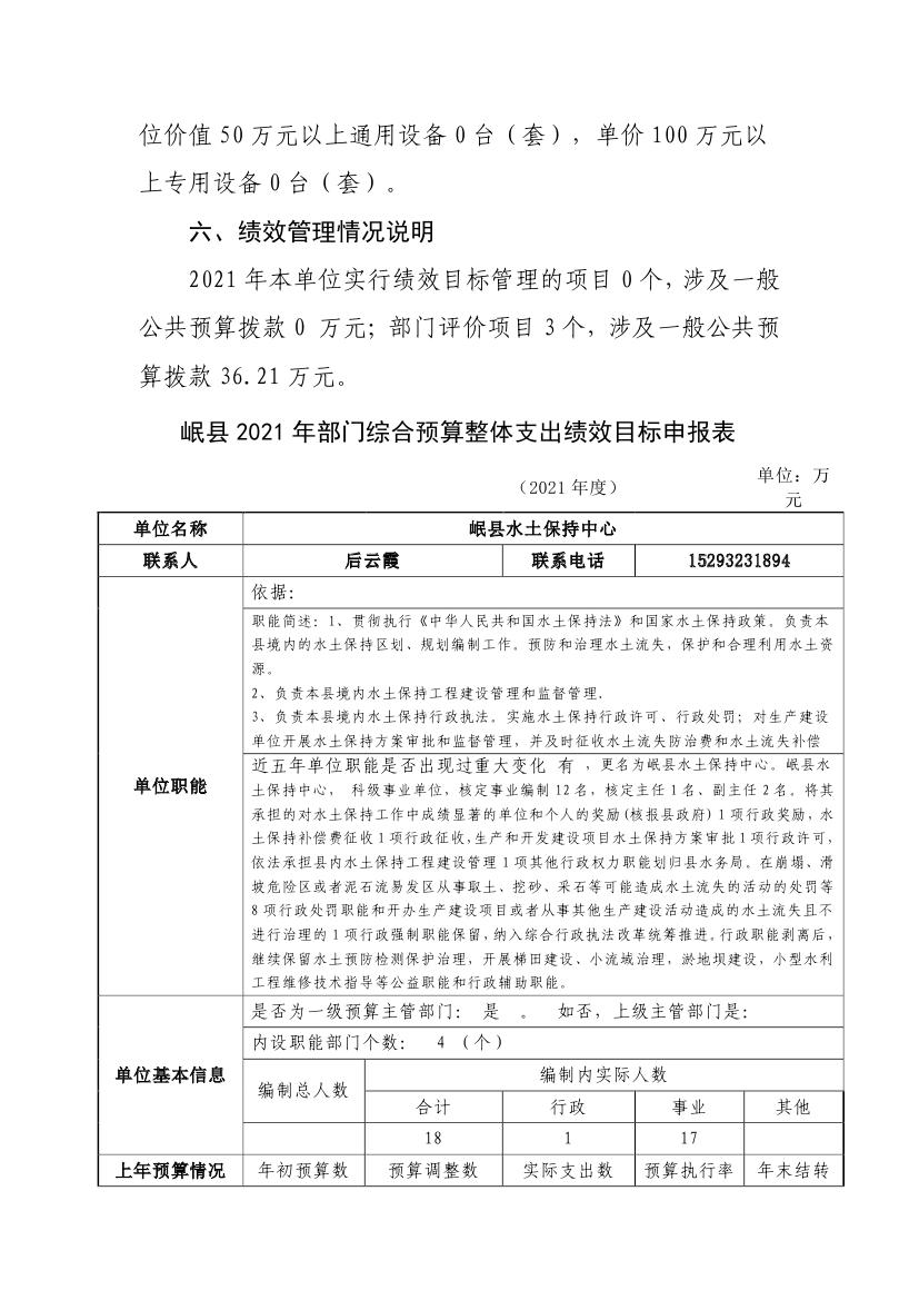 岷县水土保持中心2021年部门预算