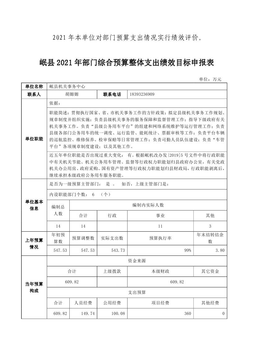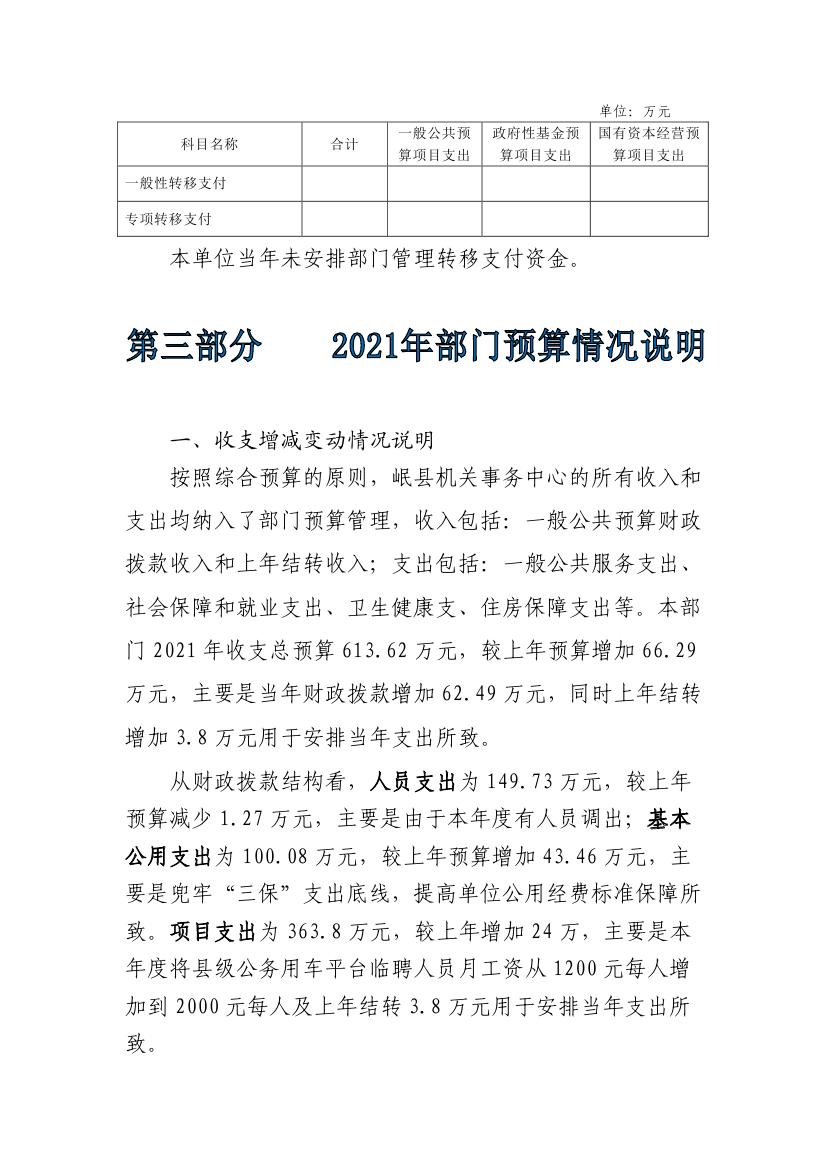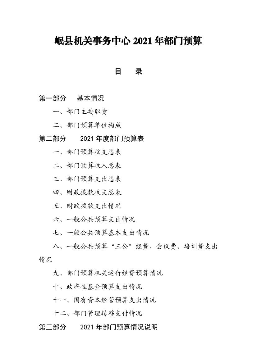 岷县机关事务中心2021年部门预算