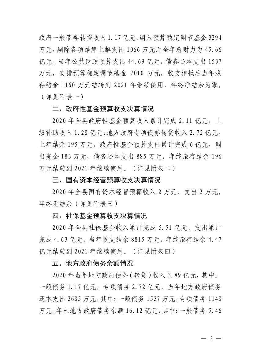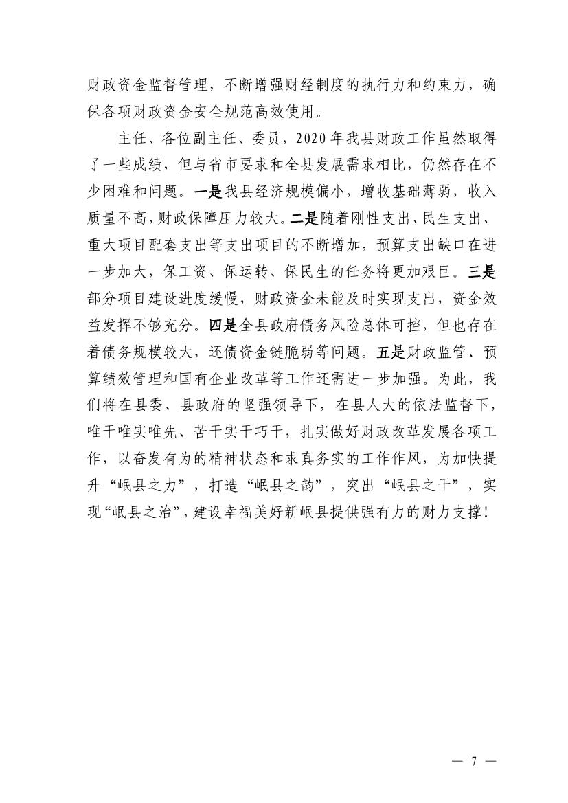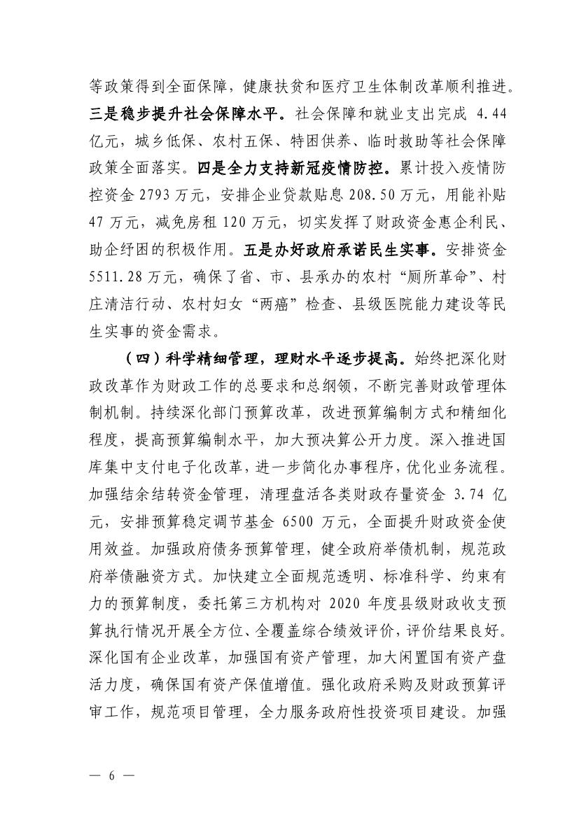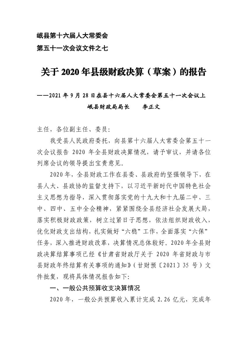 关于2020年县级财政决算(草案)的报告