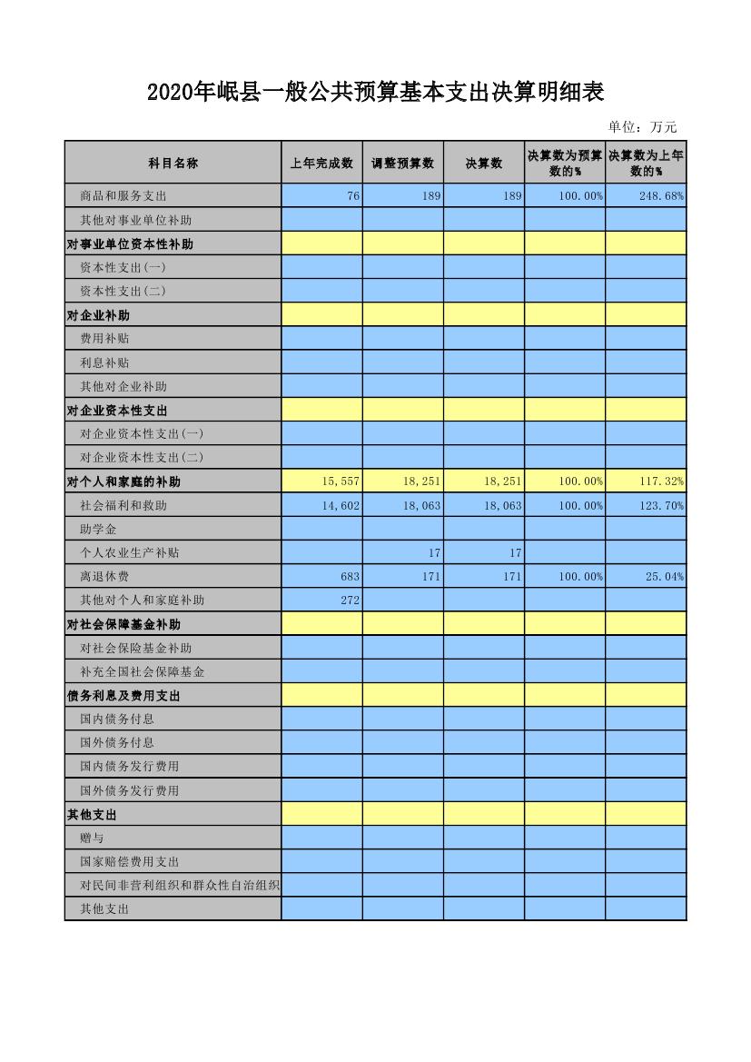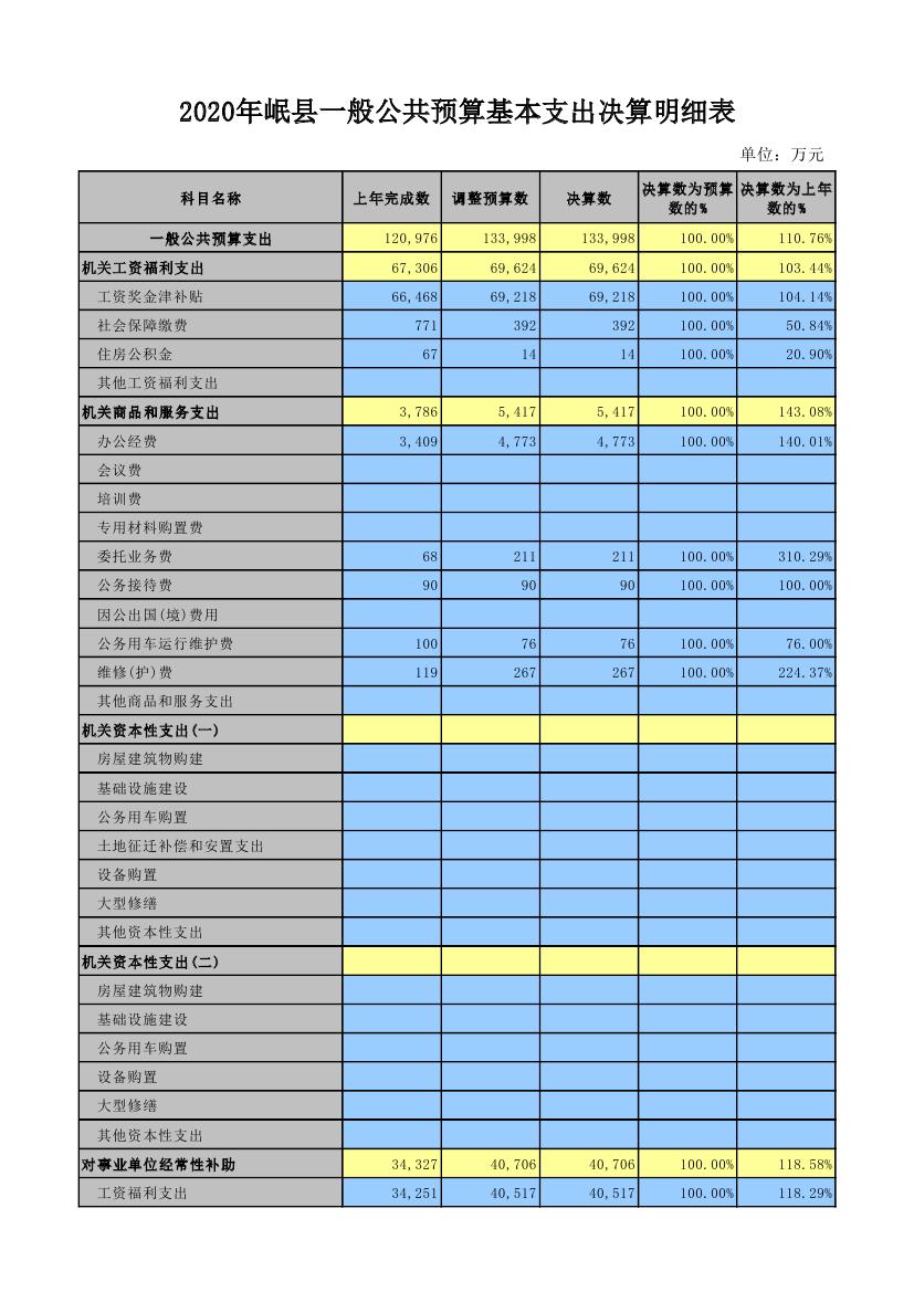 岷县2020年一般公共预算本级基本支出决算表