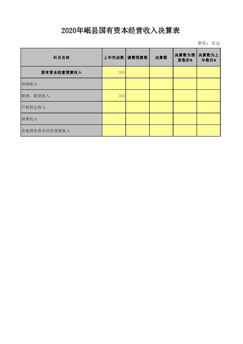 岷县2020年国有资本经营收入决算表