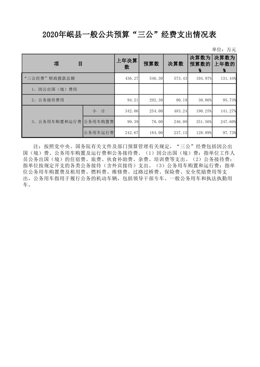 岷县2020年一般公共预算“三公”经费决算执行情况