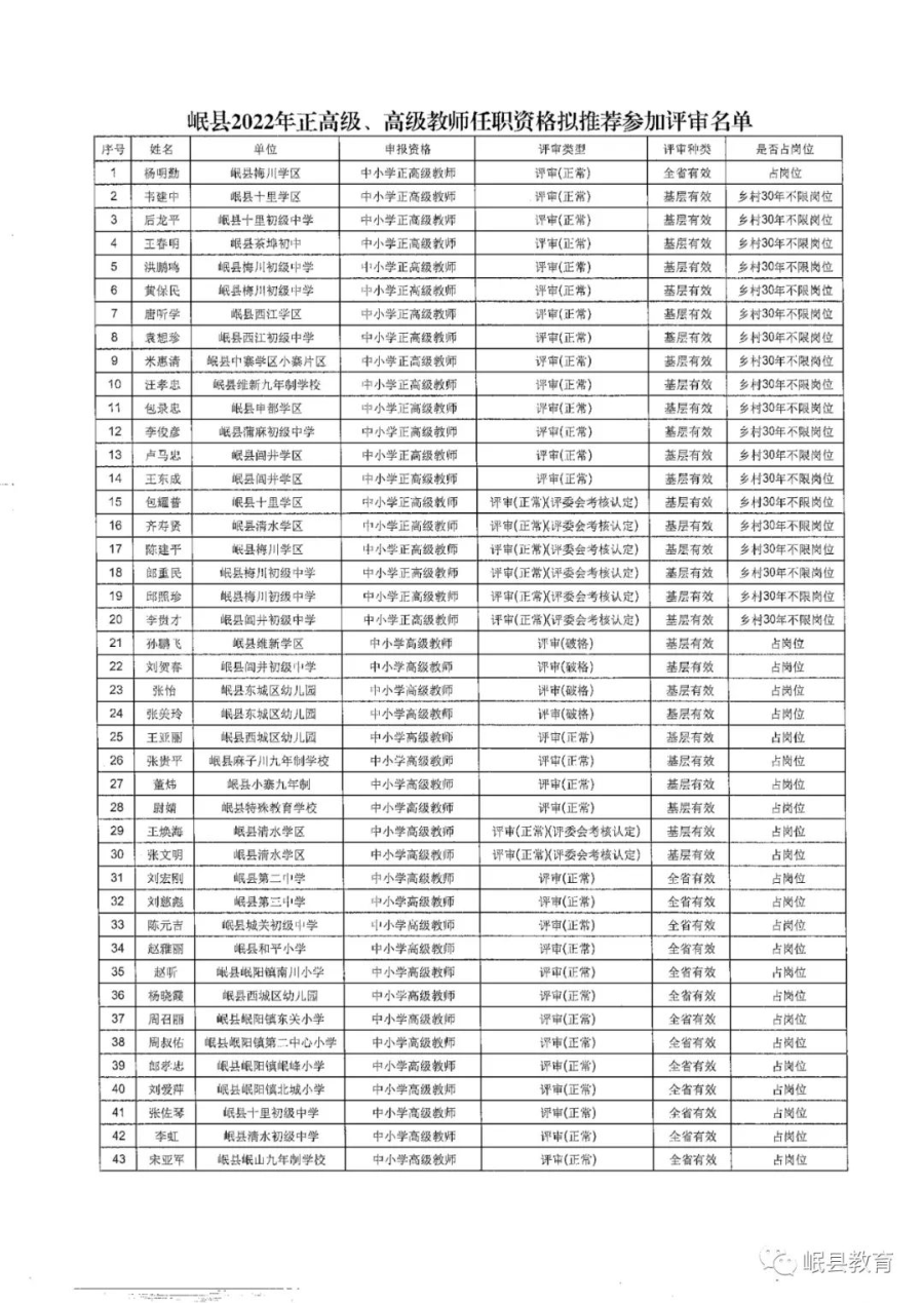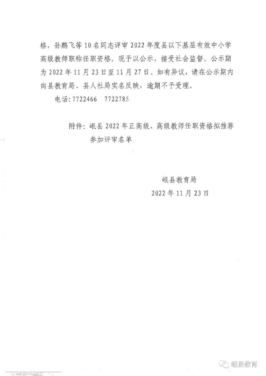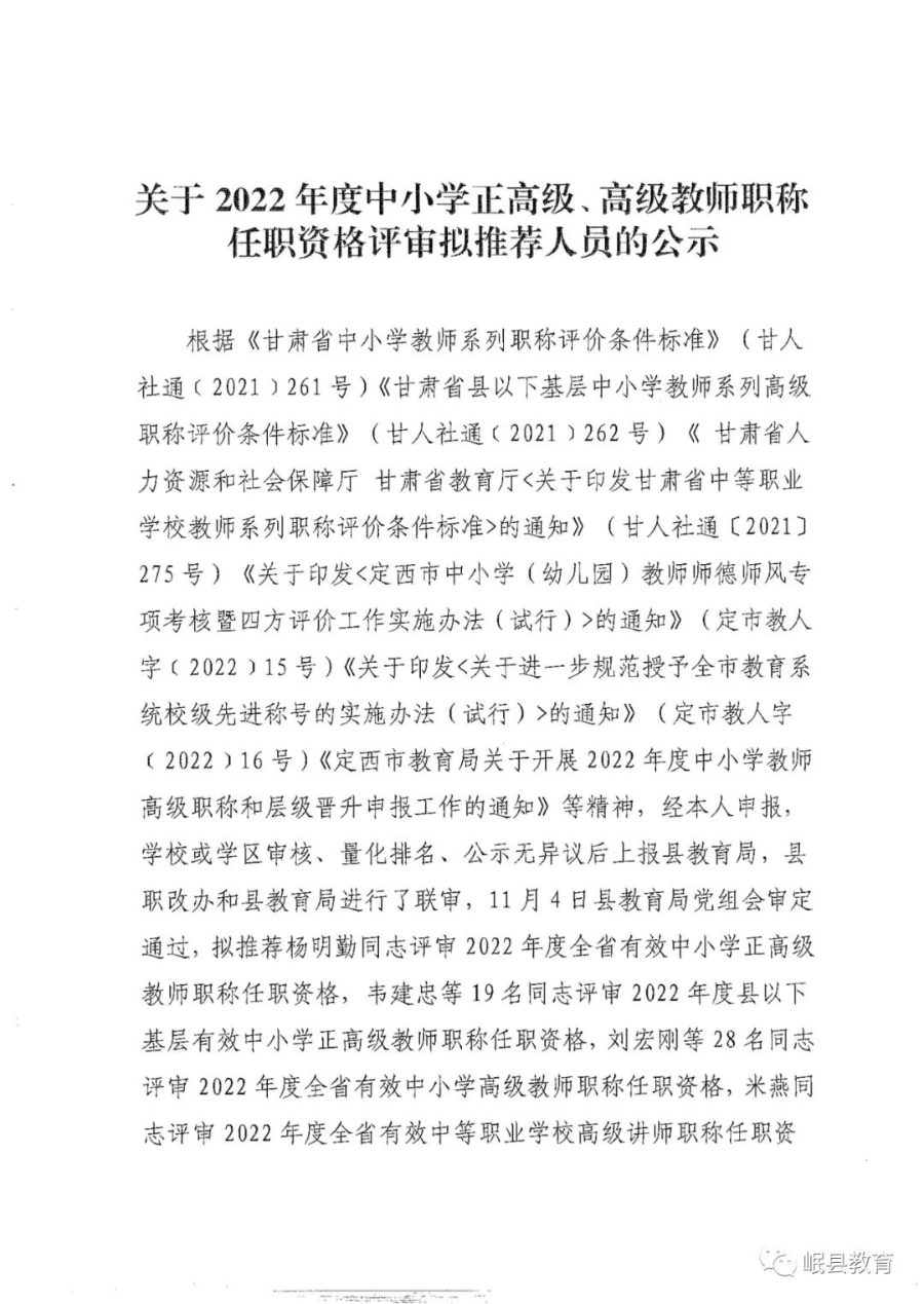 关于2022年度中小学正高级、高级教师职称任职资格评审拟推荐人员的公示