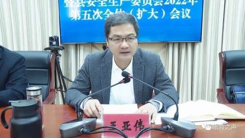 王亚伟在全县应急管理委员会暨全县安全生产委员会2022年第五次全体(扩大)会议上强调 把握形势 聚焦重点 细化措施 压实责任 确保全县社会大局持续稳定 12月27日,全县应急管理委员会暨全县安全生产委员会2022年第五次全体(扩大)会议召开。县委副书记、县长、县应急管理委员会主任王亚伟出席会议并讲话。他强调,要深入贯彻落实习近平总书记重要指示精神及省、市相关会议精神,科学把握当前形势,聚焦重点领域环节,落实落细防范措施,压紧压实各方责任,持之以恒抓好各领域安全生产工作,确保全县社会大局持续稳定。