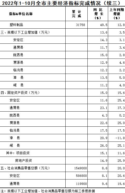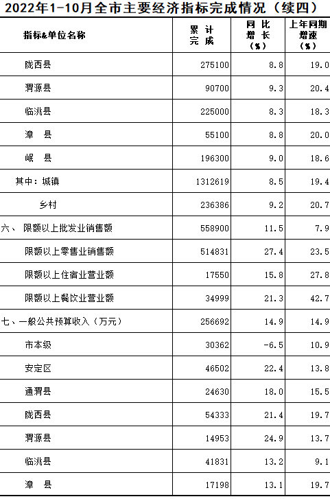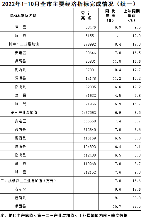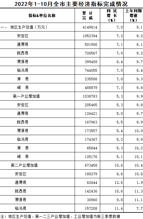 2022年1-10月定西统计月报