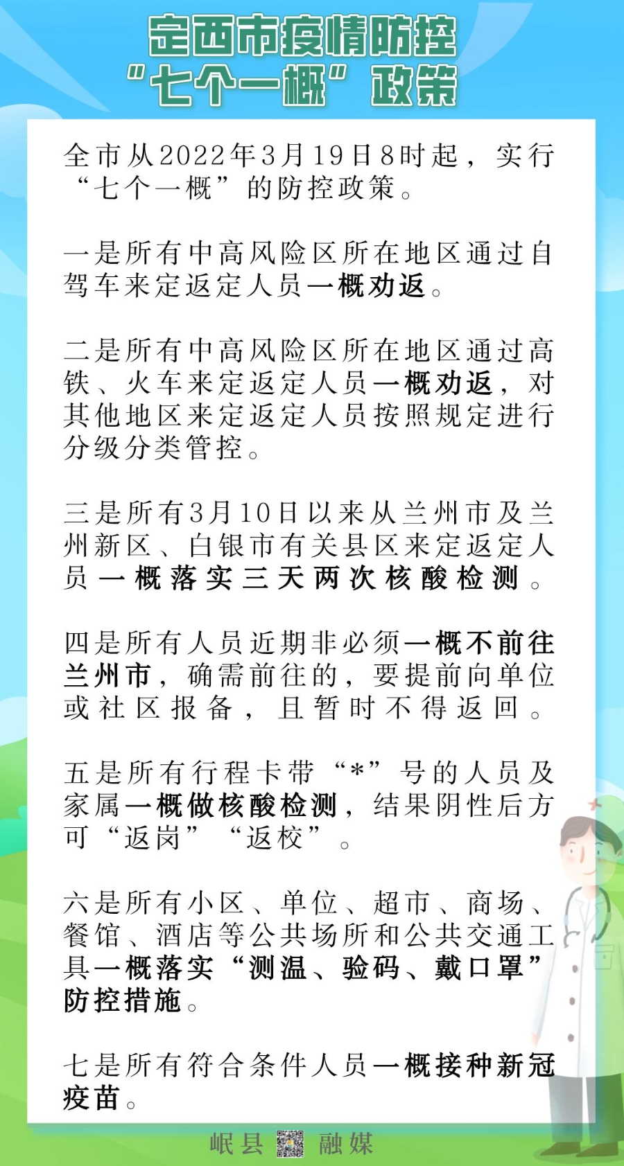 定西市疫情防控“七个一概”政策了解一下