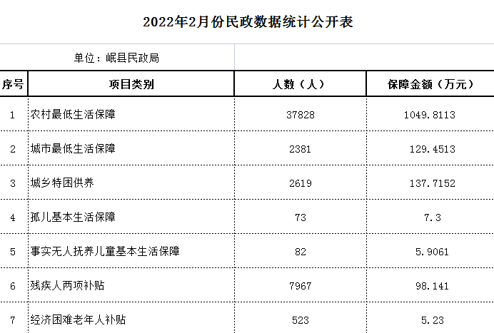 2022年2月份民政数据统计公开表