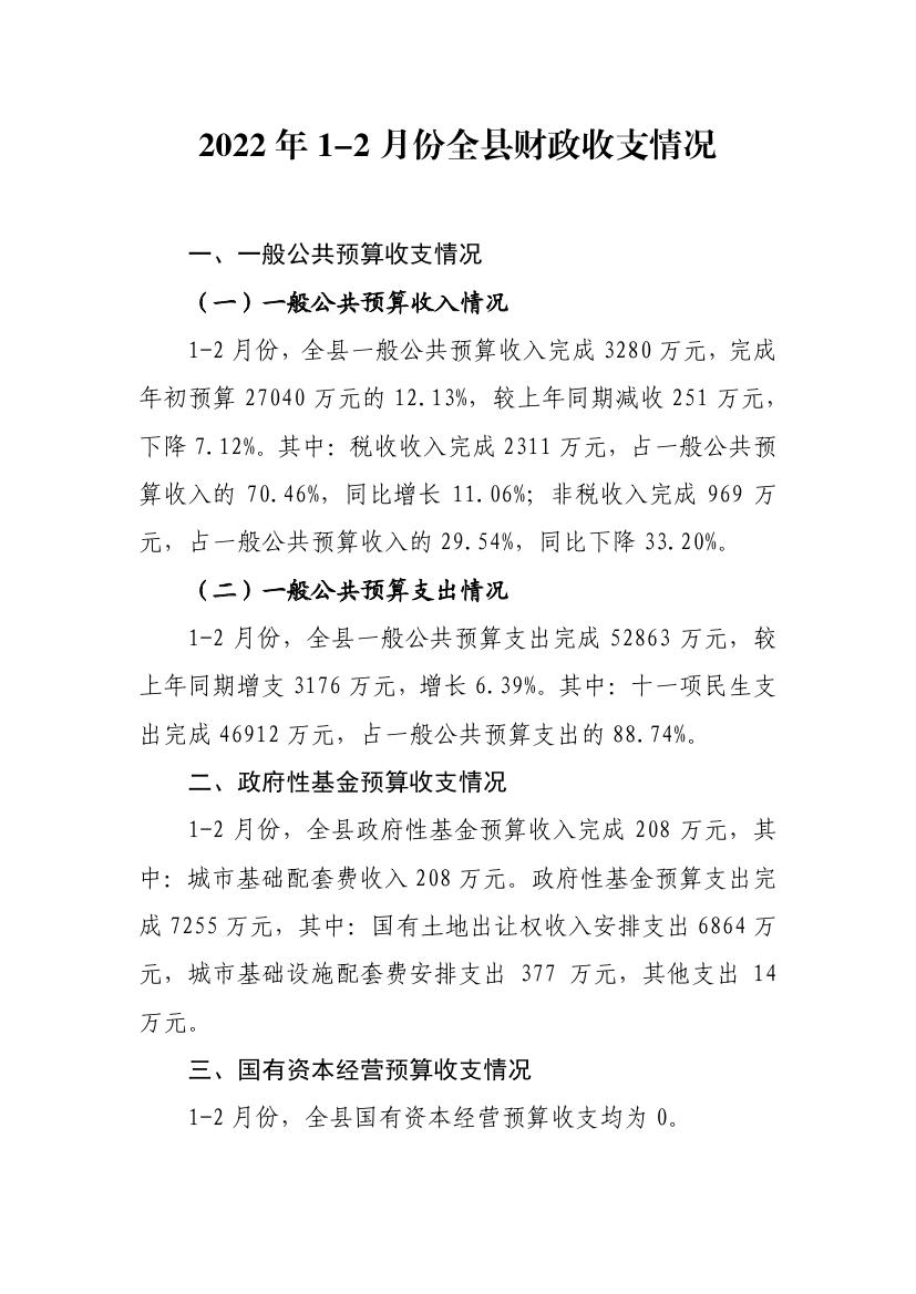 2022年1-2月份全县财政收支情况