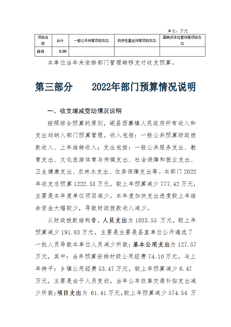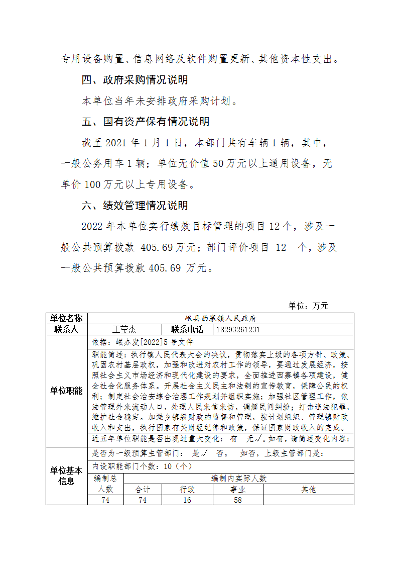 岷县西寨镇人民政府2022年部门预算