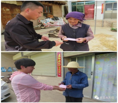 为鼓励引导农村群众用好自来水,转变生活用水习惯,改变生活面貌,助力乡村振兴,近日,岷县水务局组织54名干部职工开展“我为群众缴水费 携手走进新时代”办实事活动,每名干部联系帮扶两户,个人出资为西江镇、中寨镇共108户“三类户”一次性缴纳全年水费共计12312元,力争让每一个真正困难的群众都能够用上“安心水”,不再为用水缴费而发愁。