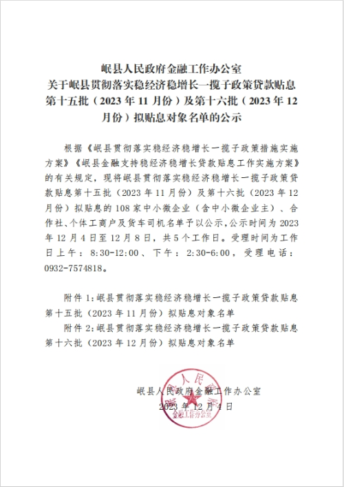 15 | 岷县野仁沟养殖农民专业合作社 | 417.00 | 兰银借字第101932023000041号 |