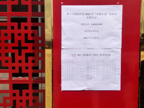 麻子川镇绿叶村涉农补贴信息公示