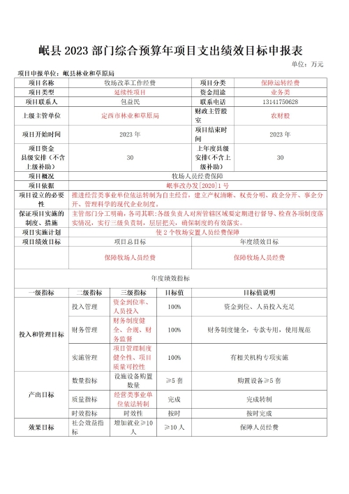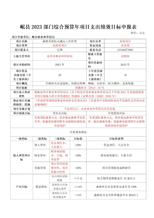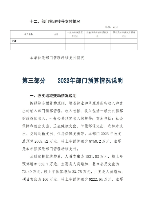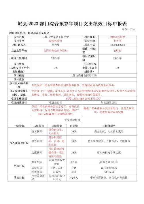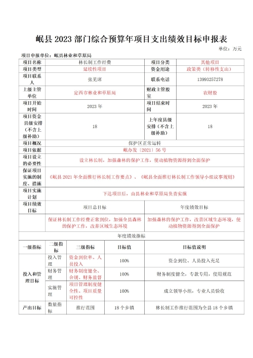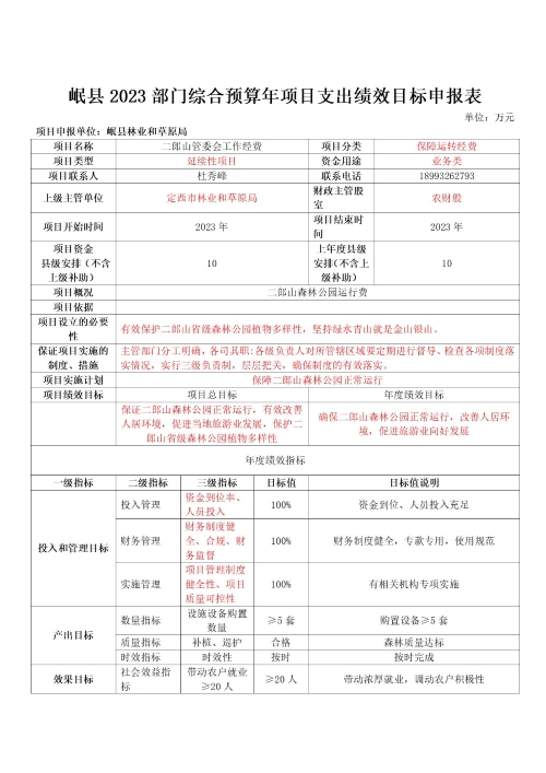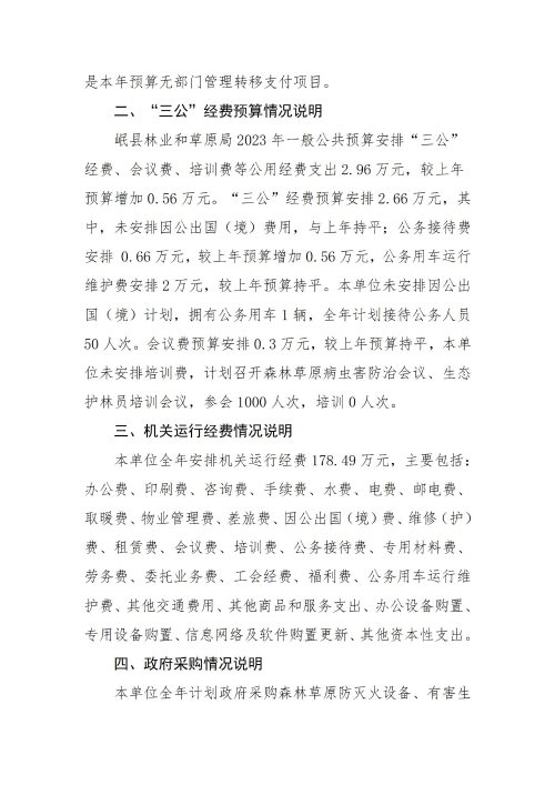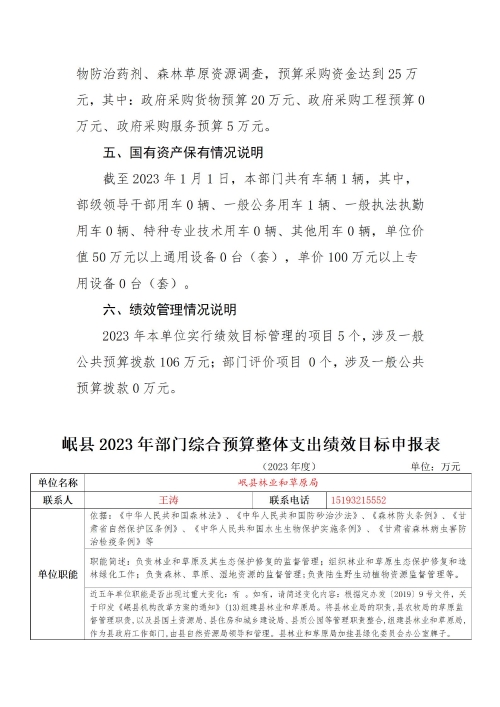 岷县林业和草原局2023年部门预算