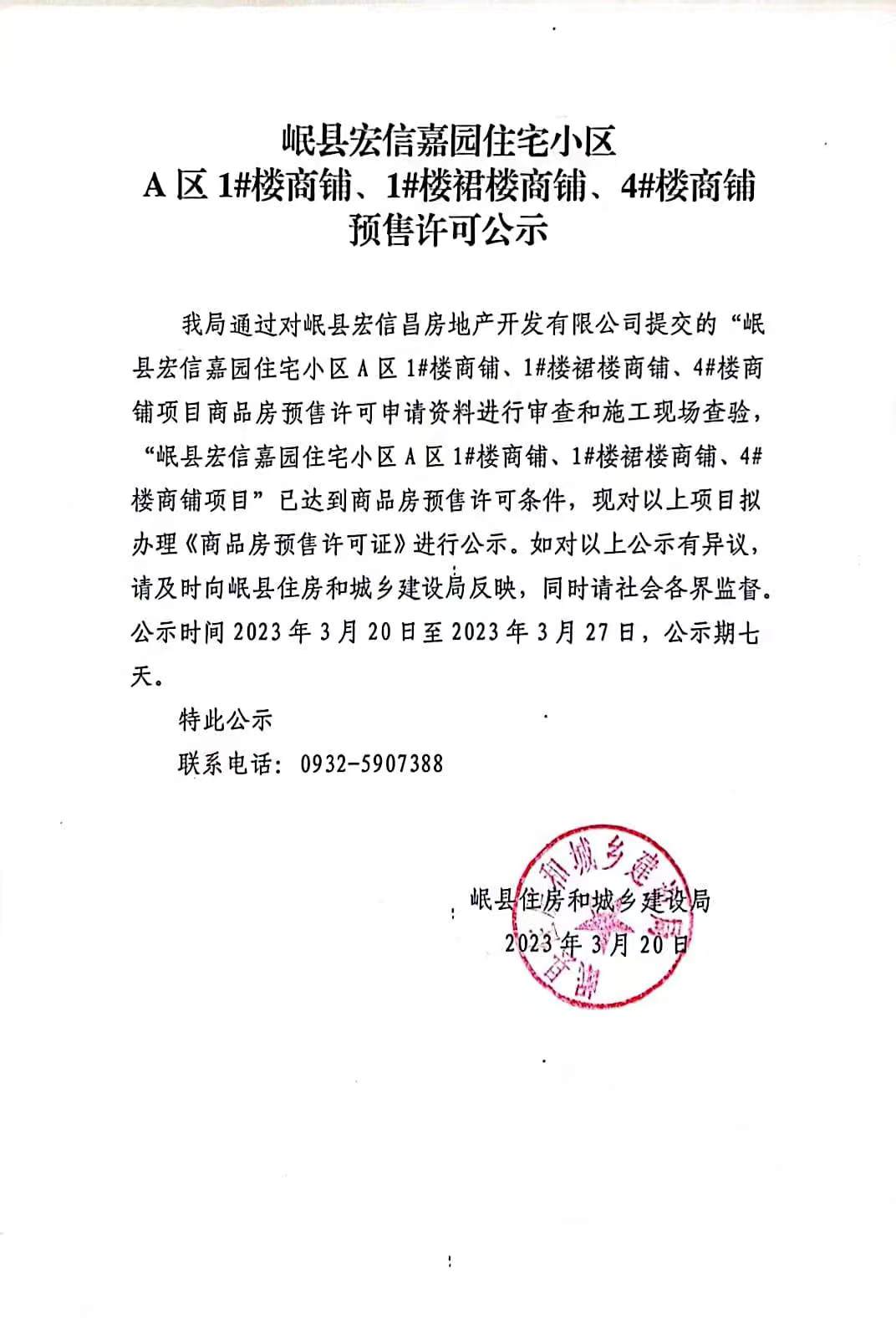 岷县宏信嘉园住宅小区预售许可公示