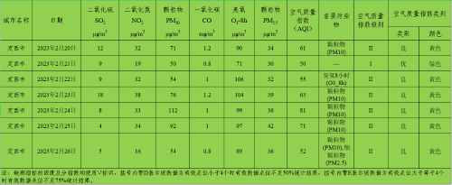 定西市区环境空气质量周报(2023年2月20日 - 2023年2月26日)