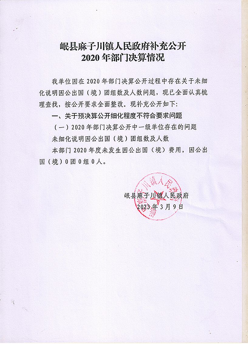 岷县麻子川镇人民政府补充公开2020年部门决算情况