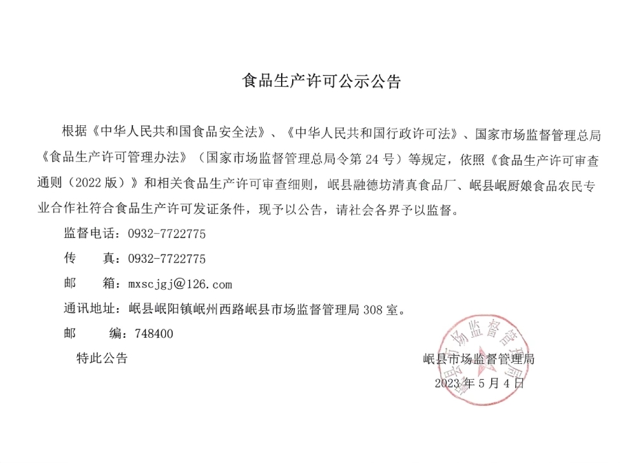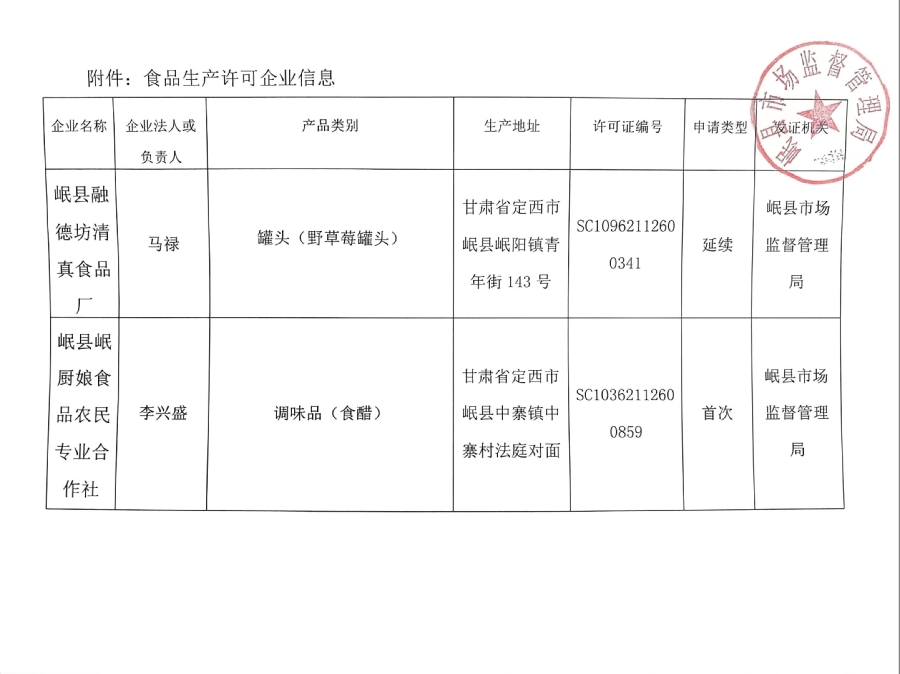 信息来源: 岷县市场监督管理局