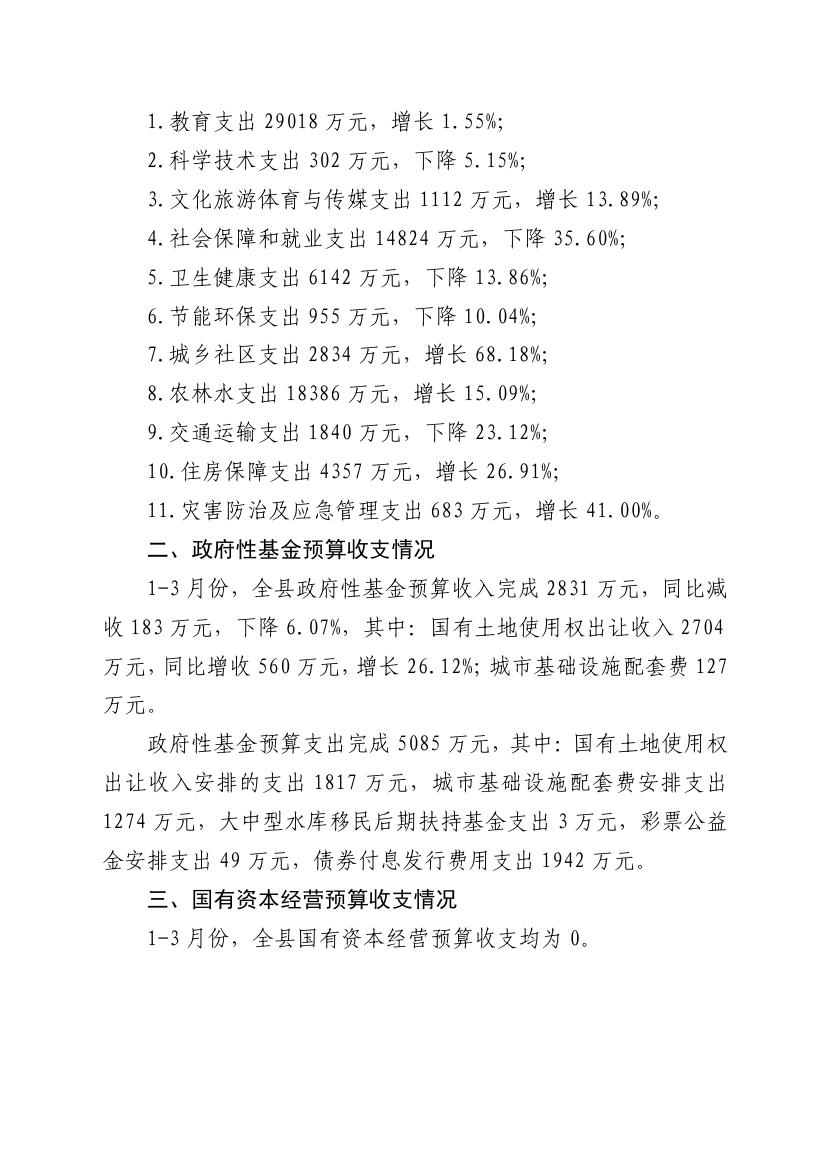 2024年1-3月份全县财政收支情况