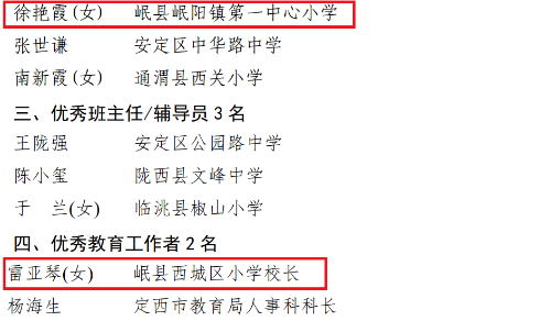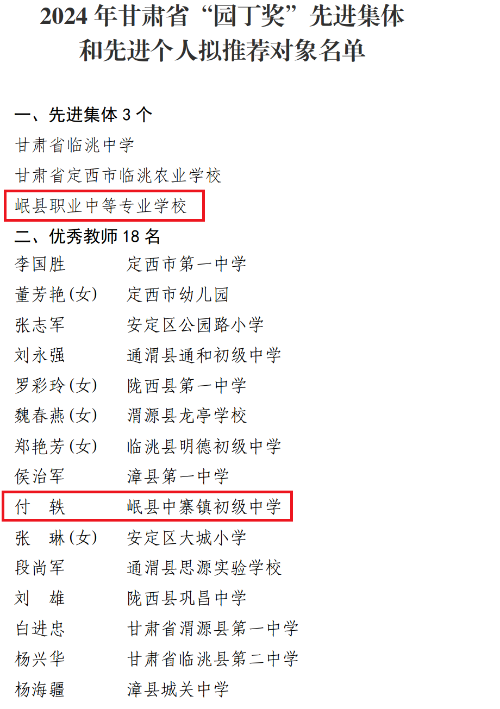 岷县1集体3个人!2024年甘肃省“园丁奖”拟推荐对象的公示 |