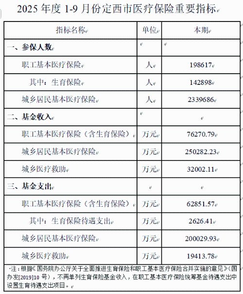 2025年度1-9月份定西市医疗保险重要指标