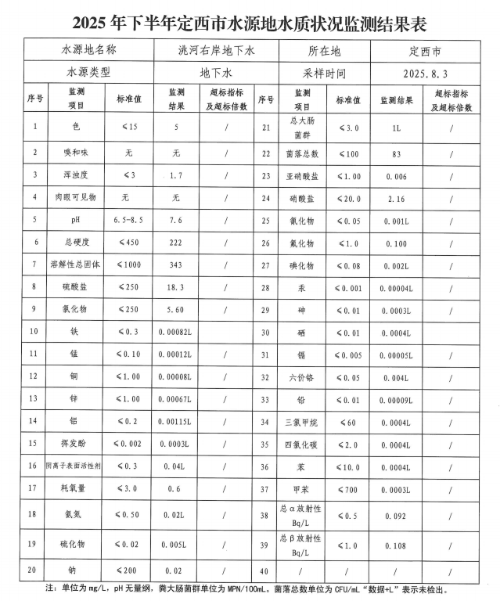 岷县2025年下半年县级集中式饮用水地下水水源地水质情况公示 |