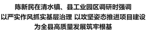 12月18日,县委书记陈新民深入清水镇、县工业园区调研。他强调,要深入学习贯彻党的二十届四中全会精神,以严实作风抓基层治理,以攻坚姿态推进项目建设,统筹抓好民生保障、社会治理等工作,为全县高质量发展筑牢根基。