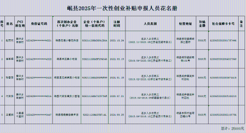 根据省财政厅、省人社厅关于印发《甘肃省就业补助资金管理办法的通知》(甘财社〔2024〕152号)文件精神,经企业及个人自主申报,相关部门联合初审,现将一次性创业补贴、单位招用(安置)脱贫劳动力(含监测对象)社会保险补贴拟符合条件主体予以公示,全面接受社会各界监督。如发现有提供虚假材料套取补贴资金的,可通过电话、来信、面谈等形式反映,我们将认真进行受理,并反馈调查核实结果;如无反映问题,将按相关规定程序进行补贴拨付。 1.一次性创业补贴:按照“首次创办小微企业或从事个体经营,所创办企业或个体工商户自工商登记注册之日起正常运营1年以上,且当前仍在正常经营的离校2年内高校毕业生、就业困难人员、就业困难退役军人、返乡入乡农民工,可给予企业法定代表人或个体经营者一次性创业补贴5000元”等内容要求,拟补贴赵丽元、侯军翠、张春芳、代亚东、王爱娟5名返乡入乡农民工(经乡镇、劳务办认定)一次性创业补贴共计2.5万元。