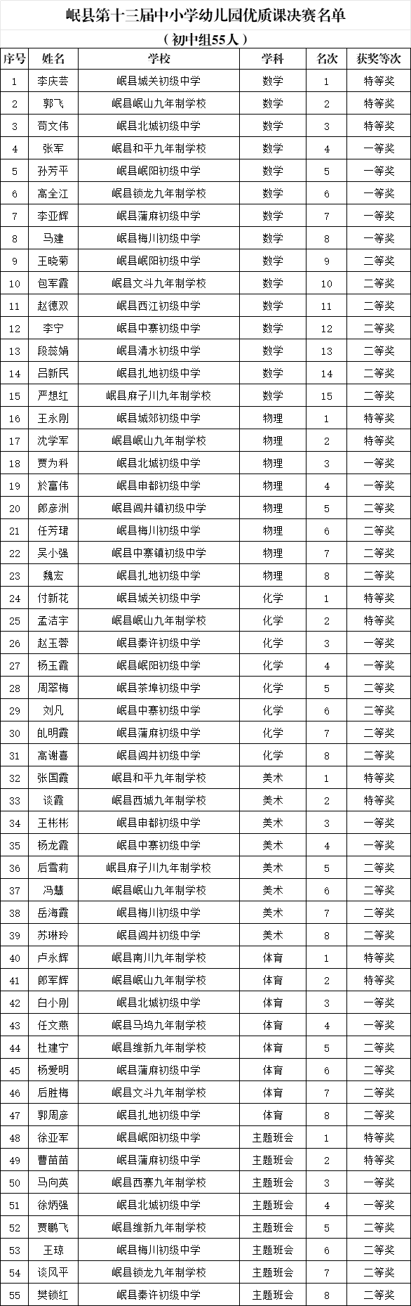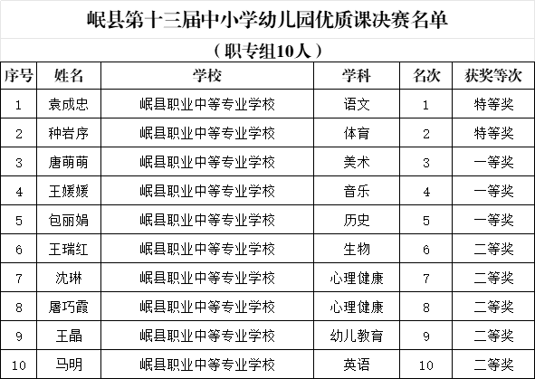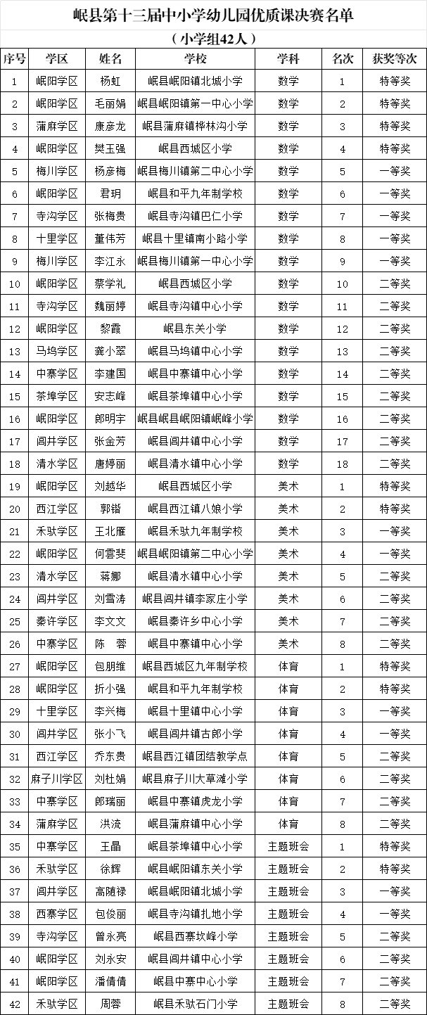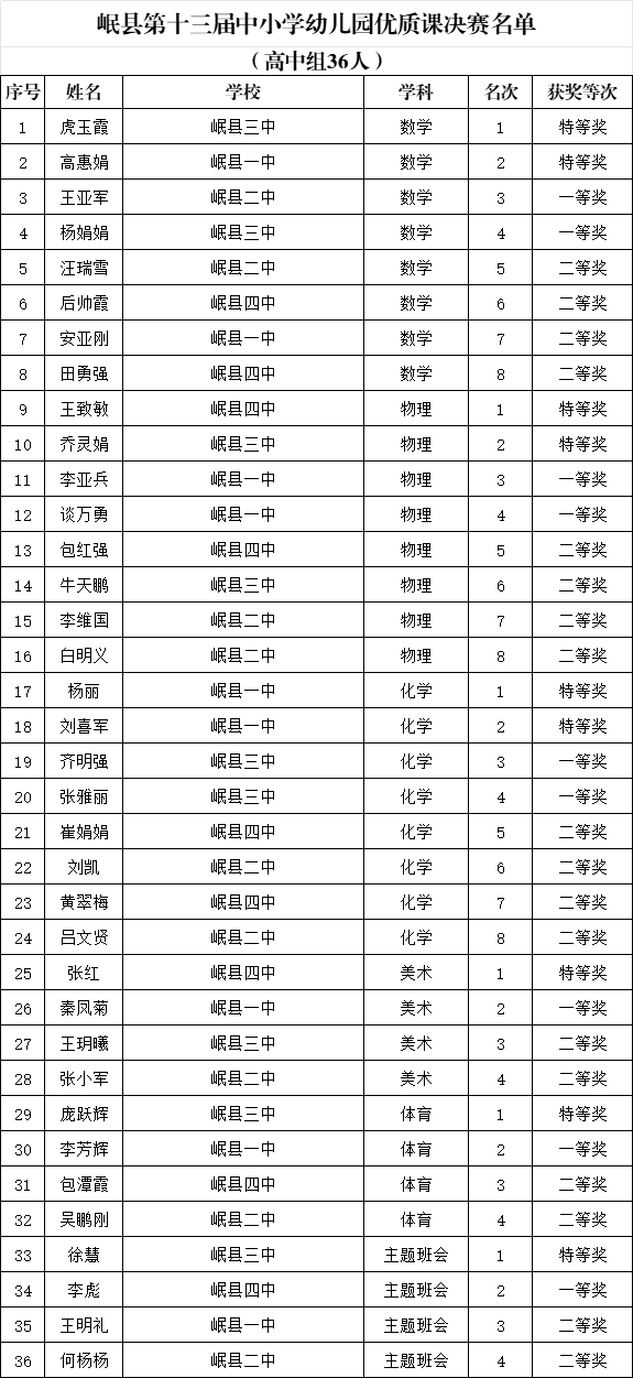 关于对岷县第十三届中小学幼儿园优质课决赛结果的公示 |
