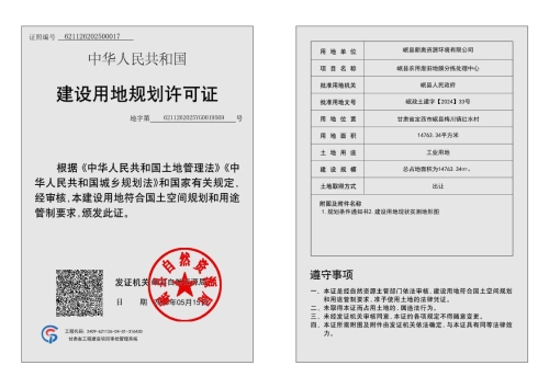 依据《中华人民共和国城乡规划法》《甘肃省城乡规划条例》《甘肃省建设项目规划许可办法》的规定,岷县新奥资源环境有限公司向我局报送了关于办理岷县农用废旧地膜分拣处理中心建设项目办理建设用地规划许可证的申请。我局对该项目办理了建设用地规划许可证。现将有关情况予以公示,接受社会监督。 一、证件编号:621126202500017 二、项目名称:岷县农用废旧地膜分拣处理中心建设项目 三、用地位置:岷县梅川镇红水村 四、项目建设单位:岷县新奥资源环境有限公司 五、用地规模:14763.34平方米 六、附件:岷县农用废旧地膜分拣处理中心建设项目建设用地规划许可证 公示期间,如有意见建议,请在法定工作日内以书面形式反馈岷县自然资源局,逾期不再受理。 联系电话:0932-7726577