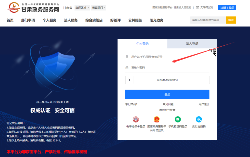 2.政务服务网端 用户点击进入甘肃政务服务网:https://zwfw.gansu.gov.cn/后按下图提示操作: