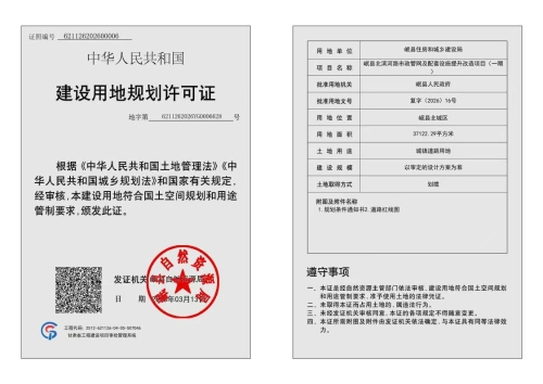 依据《中华人民共和国城乡规划法》《甘肃省城乡规划条例》《甘肃省建设项目规划许可办法》的规定,岷县住建局向我局报送了关于办理岷县北滨河路市政管网及配套设施提升改造项目(一期)建设用地规划许可证的申请。我局对该项目办理了建设用地规划许可证。现将有关情况予以公示,接受社会监督。 一、证件编号:621126202600006 二、项目名称:岷县北滨河路市政管网及配套设施提升改造项目(一期) 三、项目建设地址:岷县北城区 四、项目建设单位:岷县住建局 五、用地规模:总用地面积约56.68亩。 六、附件:岷县北滨河路市政管网及配套设施提升改造项目(一期)建设用地规划许可证 公示期间,如有意见建议,请在法定工作日内以书面形式反馈岷县自然资源局,逾期不再受理。 联系电话:0932-7726577 联系地址:岷县自然资源局 邮编:748400
